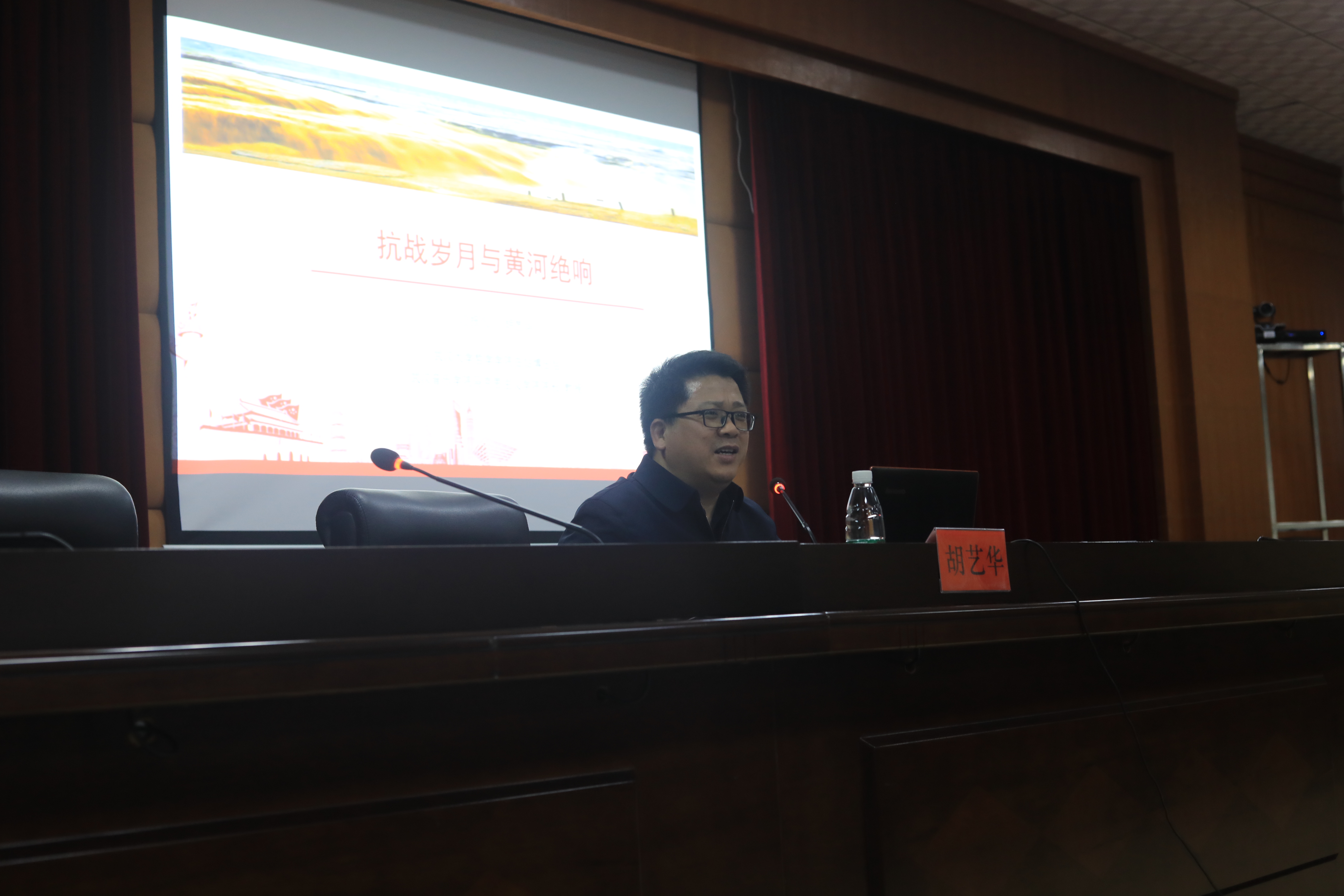 本网讯(通讯员吴祖琳)4月1日晚,武汉音乐学院马克思主义学院院长胡艺华教授,应邀在永利官网行政楼八楼一会议室作题为《抗战岁月与黄河绝响》的学术讲座,讲座由马克思主义学院院长廖雅琴主持,马克思主义学院及音舞学院共计百余名师生参加。