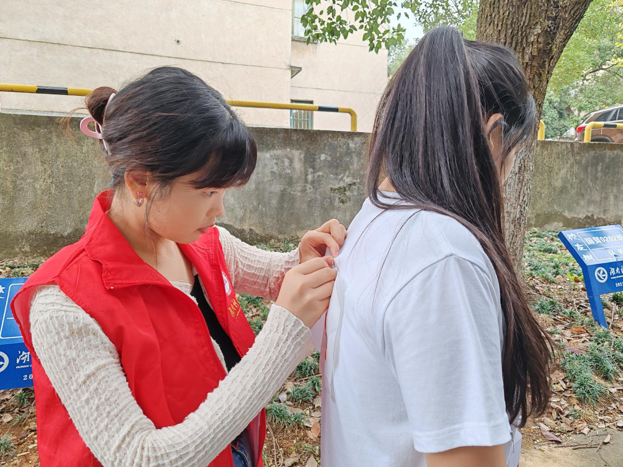 赛场外,志愿者和各部门人员认真负责,为运动员提供赛前赛后暖心服务、维持比赛现场秩序,是校运会顺利开展的有力保障。