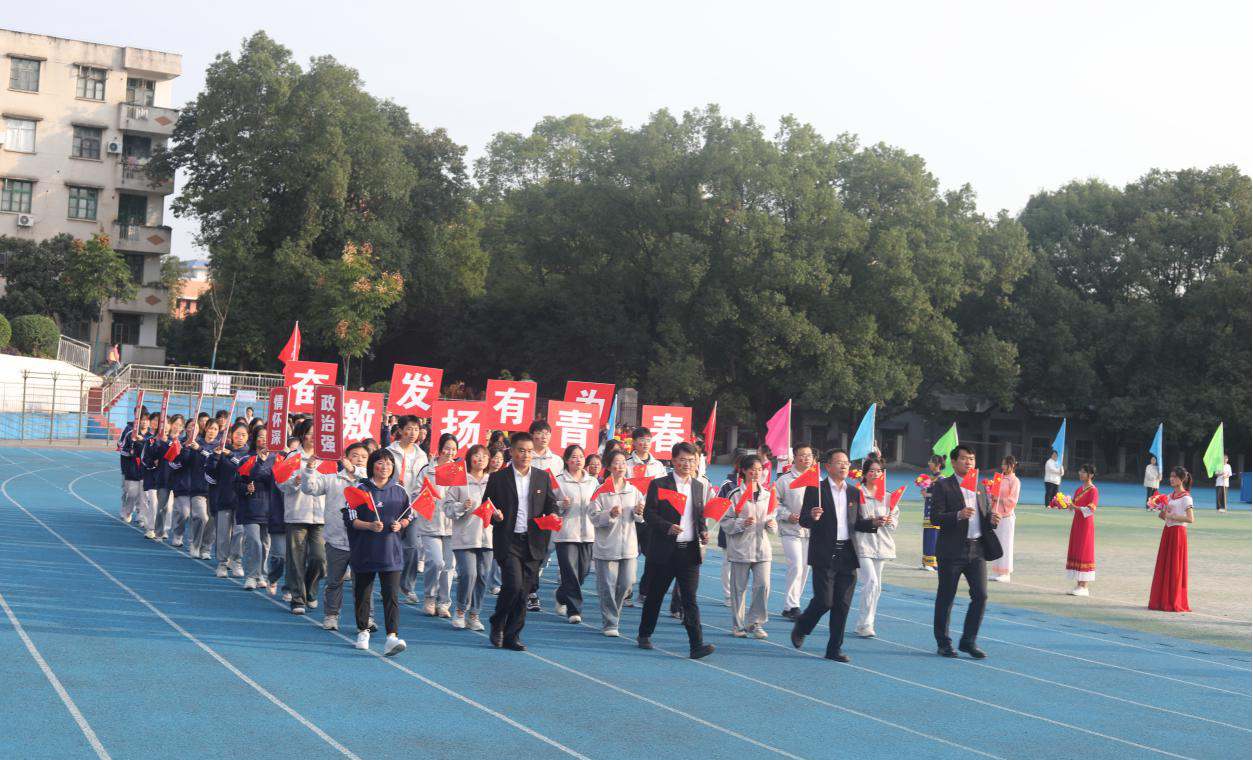 各队伍入场完毕后,缓缓响起的国歌和随风飘扬的五星红旗激起了每位学子心中浓浓的爱国情怀。“我们将坚持友谊第一,比赛第二的原则……”随着校运会的运动员代表的宣誓,本届校运会正式拉开帷幕。