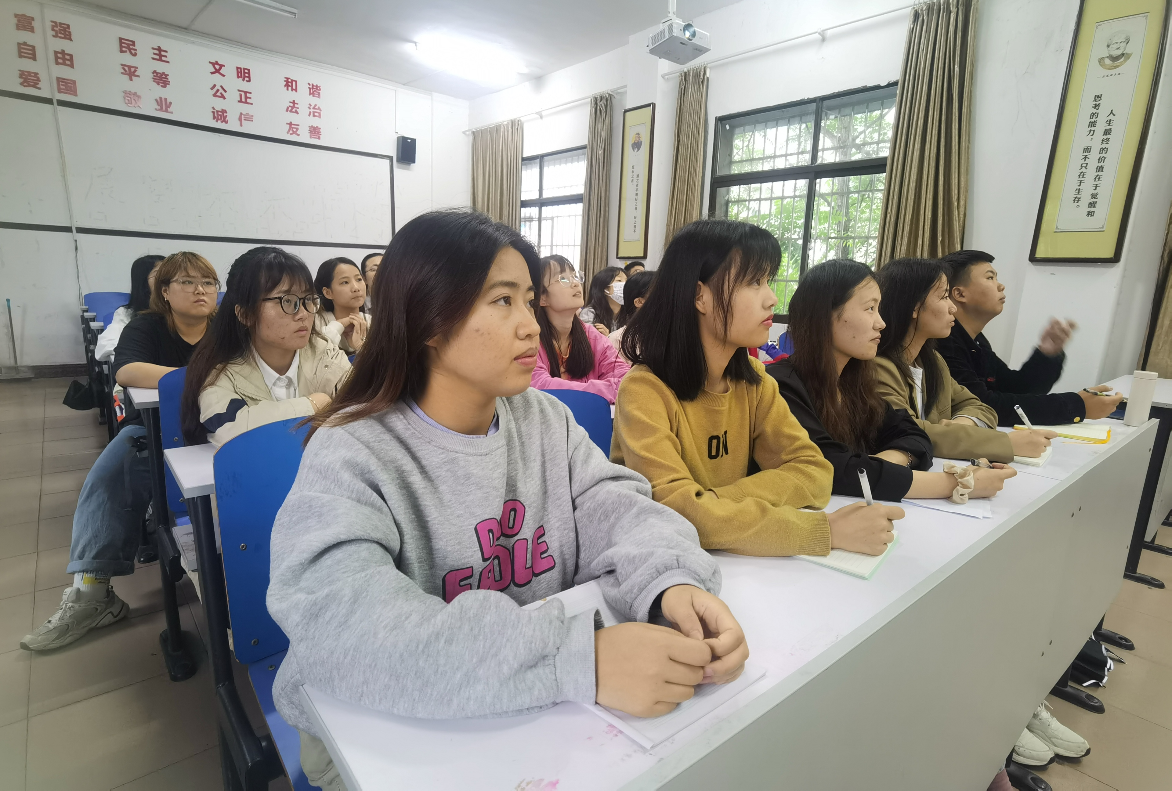 本网讯(记者 吴祖琳)“我们是五月的花海,用青春拥抱时代…...”,《光荣啊,中国共青团》唱出了青年身上激昂向上的状态,唱出了青年对祖国诚挚无比的热爱。5月10日上午,庆祝中国共产主义青年团成立100周年大会在北京人民大会堂隆重举行。中共中央总书记、国家主席、中央军委主席习近平在会上发表重要讲话。304am永利集团官网组织全校师生代表在潇湘大讲堂观看直播,马克思主义学院部分师生代表受邀观看,其余师生干部于鹤鸣楼406、407、501教室同步观看大会直播。师生齐聚,热议习近平总书记在大会上的讲话。