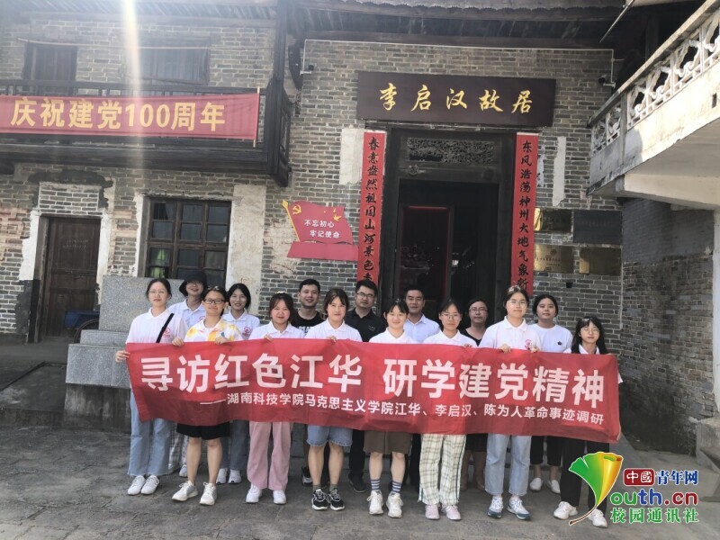 中国青年网永州7月28日电(通讯员 高丹) “中国共产党人把青春和热血书写了彪炳史册的壮丽篇章,作为新时代新青年大学生,我们一定会听党话、跟党走,继续弘扬我们党的革命传统,把伟大的建党精神传承下去并发扬光大”。日前,304am永利集团官网马克思主义学院思想政治教育专业2020级学生胡亚琪与10多名同学在老师的带领下来到永州市江华瑶族自治县开展暑假“三下乡”党史学习实践活动。