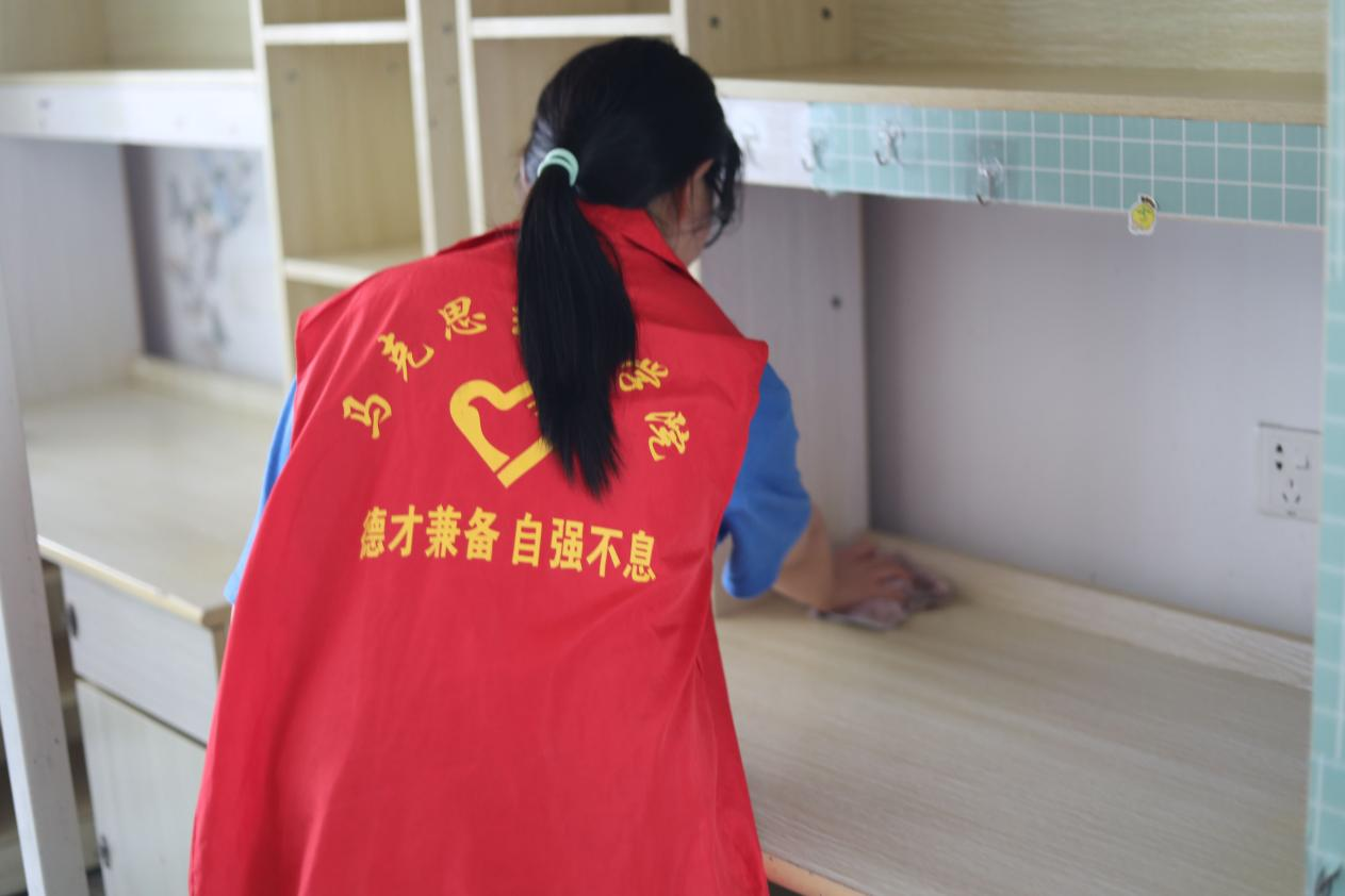 本网讯(记者 毛梦琦)为更好落实毕业生离校工作,营造干净、文明的寝室环境。6月13日,马克思主义学院组织开展“‘寓’情于寝,‘宿’焕新颜”毕业清扫活动。