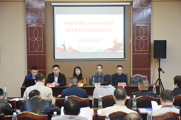 本网讯 (通讯员 李艳)为深入贯彻落实全面从严治党要求,进一步加强基层党组织建设,10月20日,正值党的十九大召开之际,永利官网为中国人民银行永州市中心支行举办了一期党支部书记专题培训班。该行机关党委书记、党委委员、工会主任雷树清,马克思主义学院院长廖雅琴等出席。