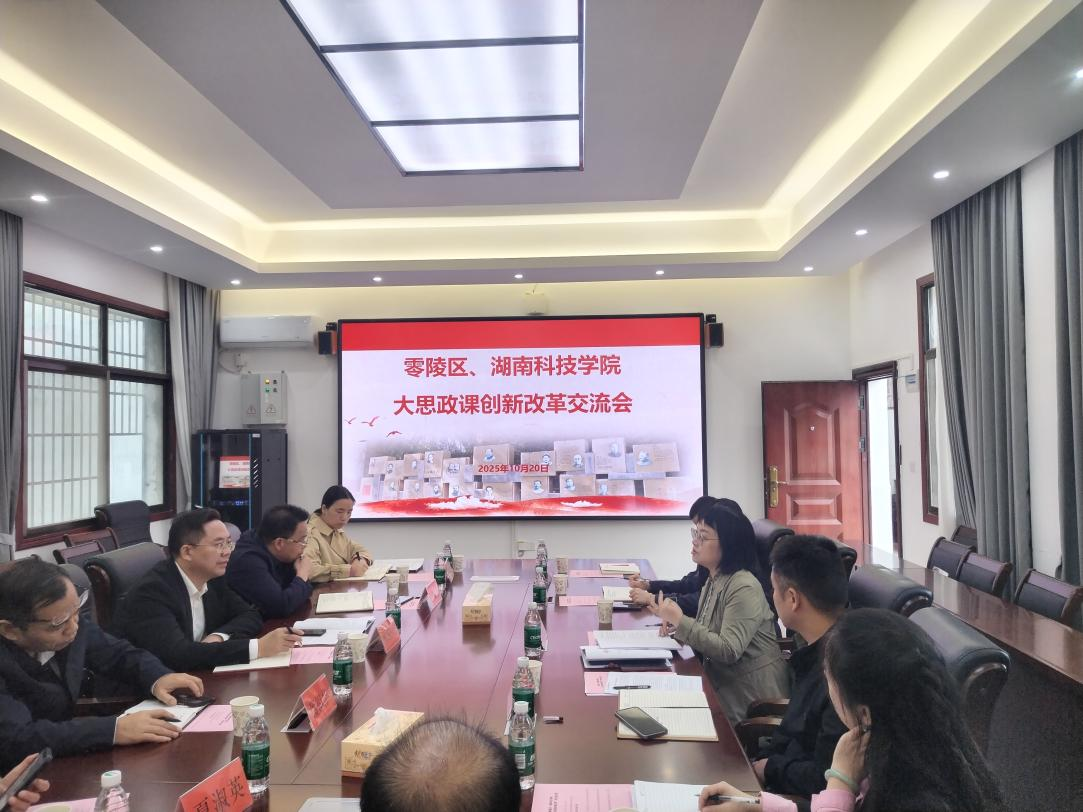 10月20日,304am永利集团官网、零陵区“大思政课”创新改革交流会在我院鹤鸣楼405会议室召开。零陵区区委办常务副主任蒋国荣一行,304am永利集团官网马克思主义学院院长廖雅琴、党总支书记高丹、副院长唐立及学院教师代表参会,双方围绕协同推进“大思政课”创新改革进行交流。