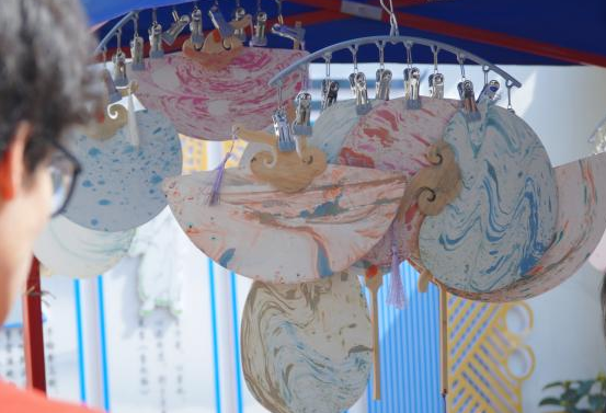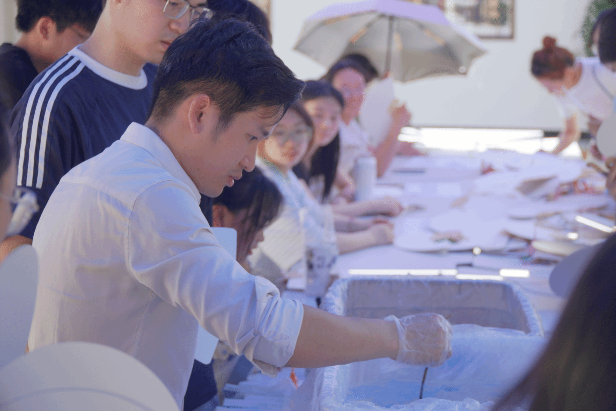 活动由美术与艺术设计学院学工办副主任黄胜老师现场授课,吸引了众多师生积极参与。在黄老师的指导下,师生们自己动手制作漆扇,过程细致而富有创造性,丰富的配色投射着同学们复杂的内心世界。