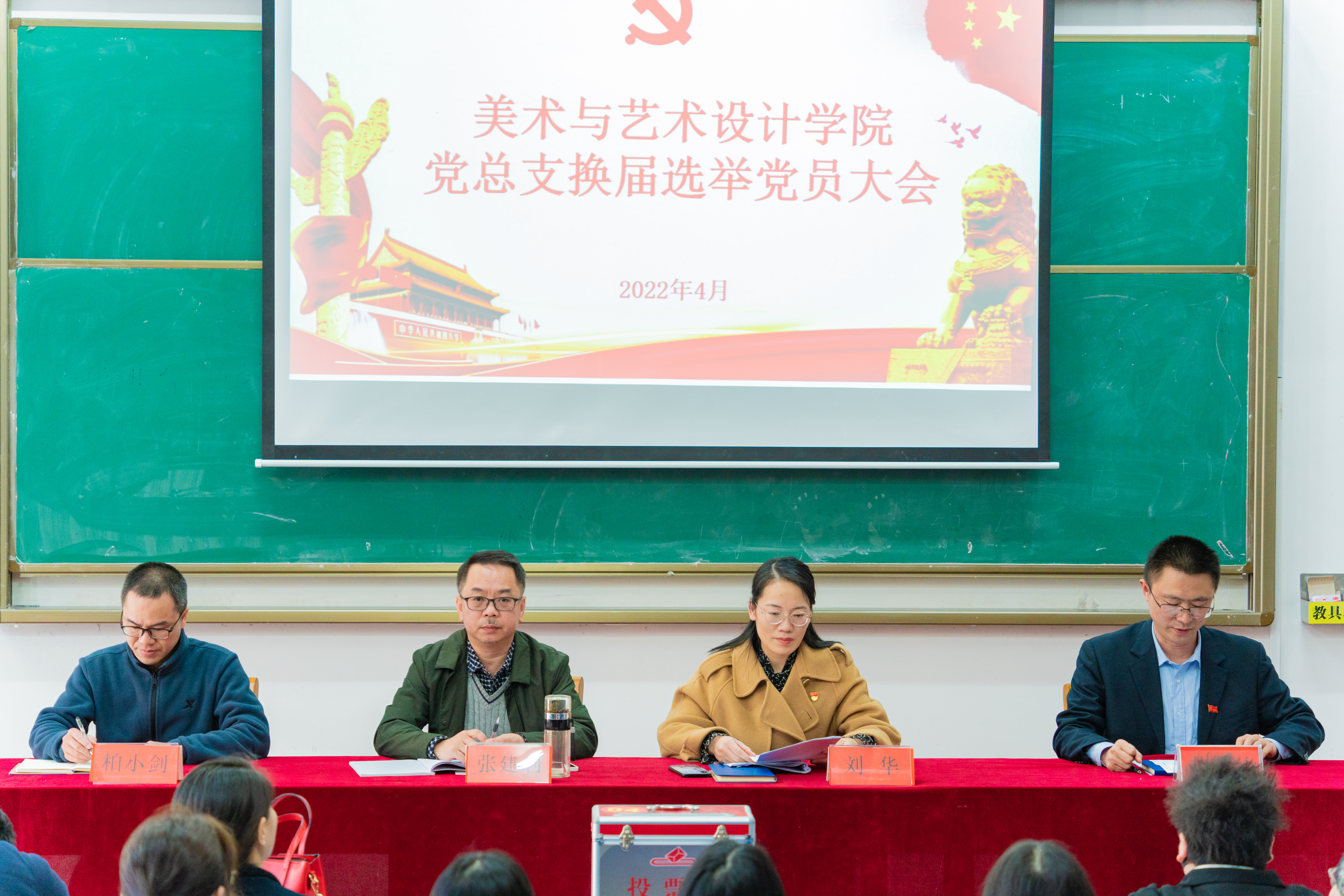 大会在雄壮的国歌声中开幕,林乔军同志宣读了学校党委同意换届选举的的批复文件,刘华同志代表上届党总支委员会向党员大会做工作报告,全面总结了党总支近三年以来的各项党建工作,党员的发展、活动的开展、党支部工作的规范等情况。大会通过了选举办法,宣布了新一届党总支委员会委员候选人名单,并举手表决通过。经党员大会无记名差额投票,刘华、张建利、林乔军、柏小剑、肖丽、周闻名、蒋小健7位同志当选为新一届党总支委员会委员,最后大会在庄严的国际歌声中落下帷幕。