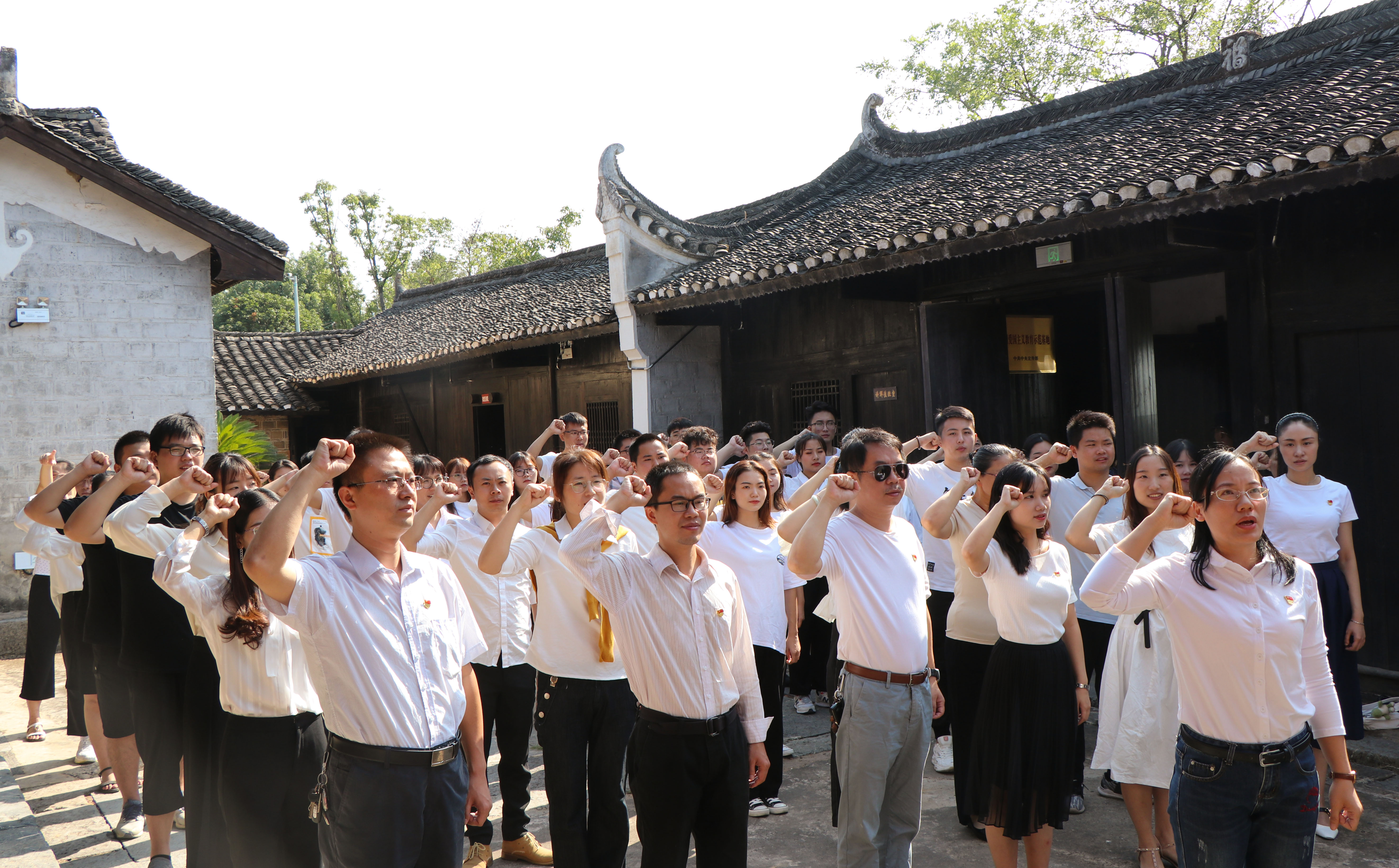 本网讯(通讯员 周闻名)2019年9月22日,在美术与艺术设计学院党总支的组织下,学院全体教师党员及部分学生党员赴李达故居学习了李达“坚持真理,不屈不挠;身体力行,万世师表”的先进事迹。学院党总支书记刘华组织全体参与成员面向党旗,重温入党誓词,庄严宣誓。