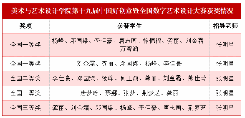 红网时刻新闻9月23日讯(通讯员 付星星 向薛峰)近日,第十九届中国好创意暨全国数字艺术设计大赛获奖结果正式公布。304am永利集团官网美术与艺术设计学院师生凭借卓越的专业实力和创新精神,斩获全国一等奖2项、二等奖1项、三等奖2项的优异成绩,创下参赛以来的最佳成绩。