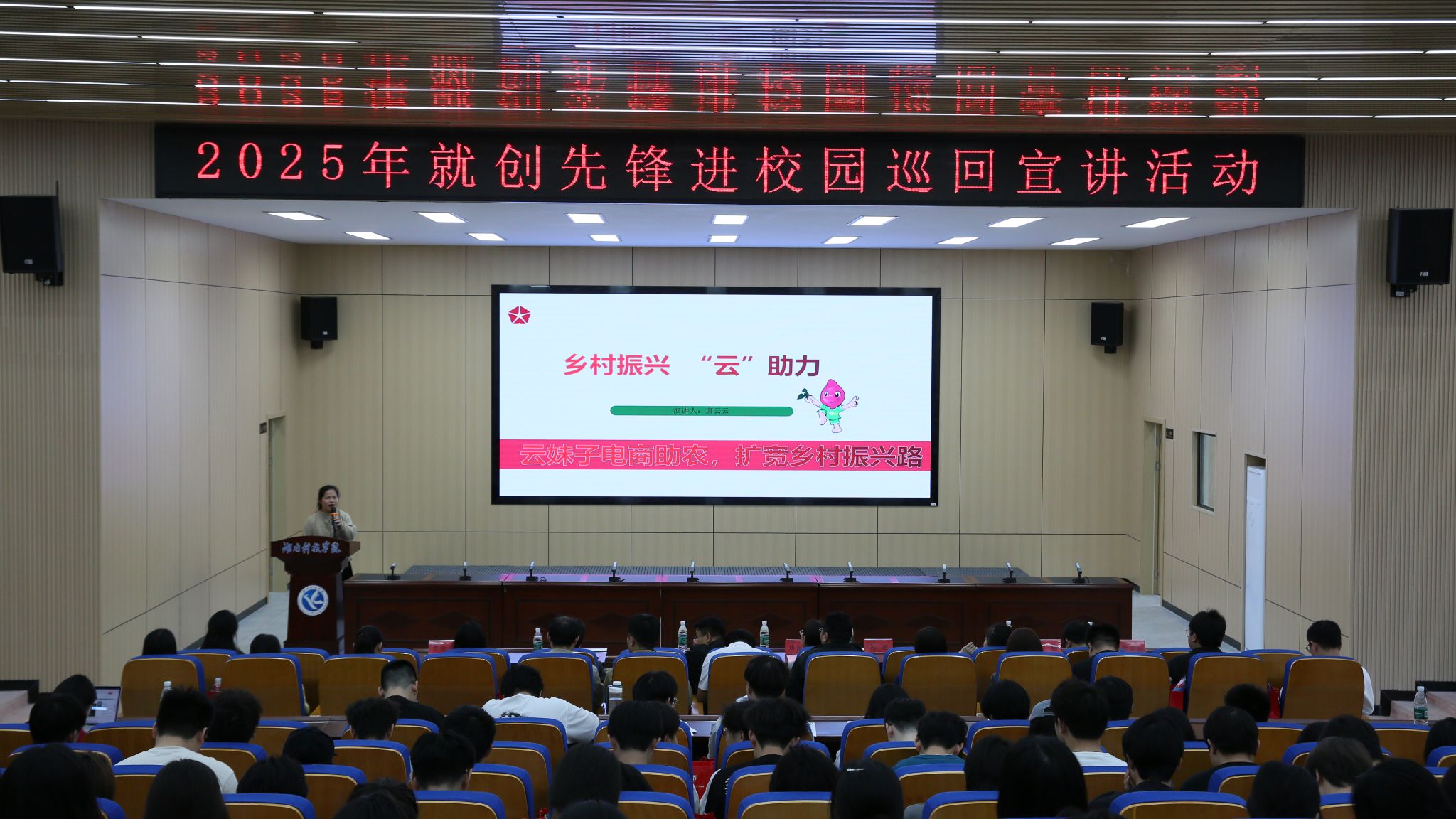 本网讯(通讯员 周忠夏)4月25日,由湖南省人社厅主办,湖南省人才发展集团、永利官网联合承办的“就创先锋进校园”宣讲暨创客训练营活动成功举办。湖南省人才发展集团党委委员、副总经理薛国华,副校长郑银芳出席活动,来自各教学学院的300余名师生参加。