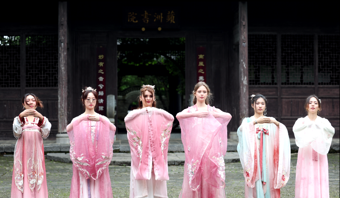 本网讯(通讯员 任景赛 赵丹)4月25日,学校国际交流与合作处(国际教育学院)联合零陵区委宣传部、零陵区委网信办、永州水云潇湘文旅公司等单位,在蘋州书院开启“潇湘汉韵·国际学生探秘永州文化行”主题活动。来自俄罗斯、泰国、老挝等国的6名国际学生身着汉服、执卷抚琴,以沉浸式体验解码永州文化基因。