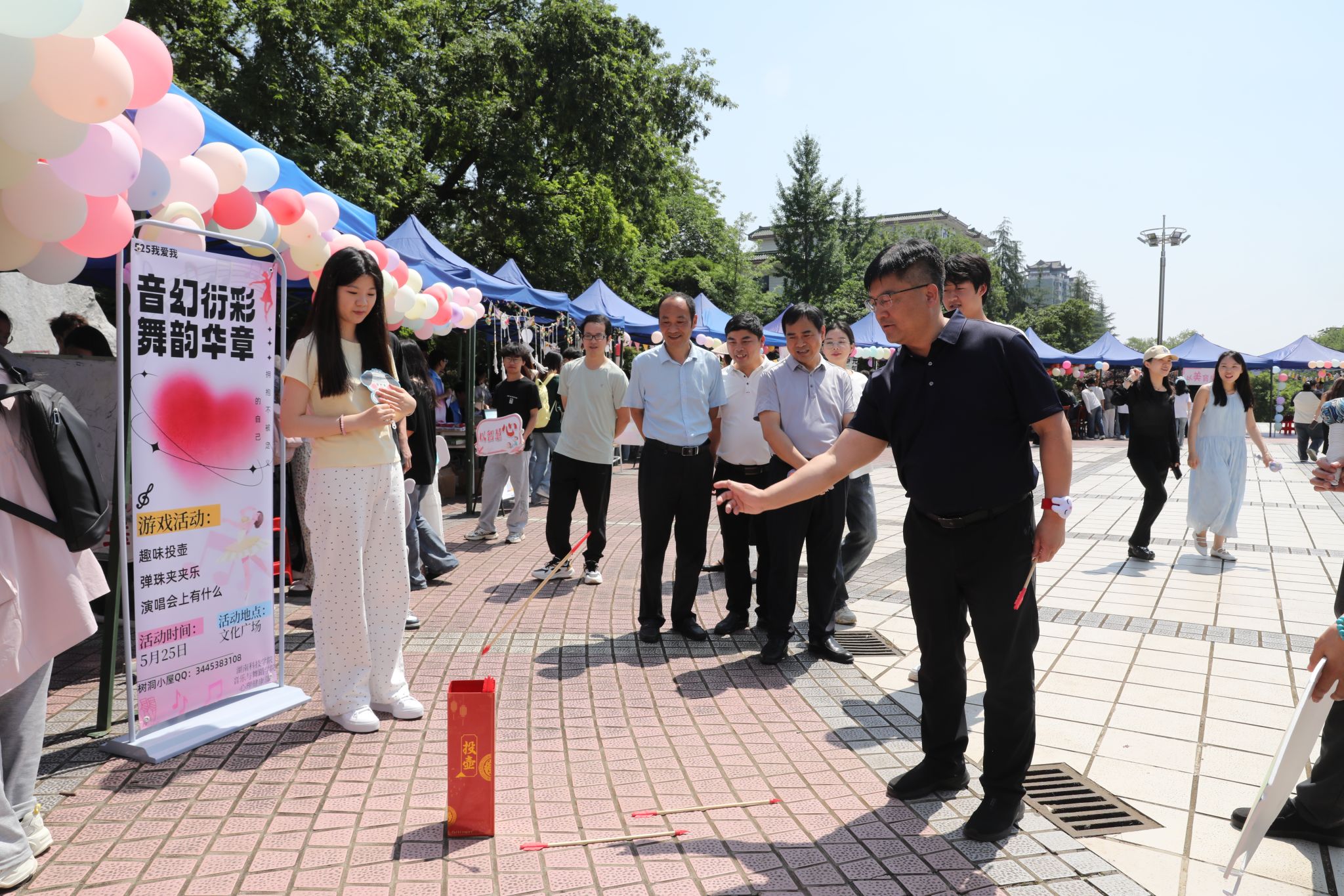 本网讯(记者 谷利梅 摄影 谢志豪)5月26日,永利官网在舜德广场开展“心润生命,健康同行,五育润心,筑梦成长”大学生心理健康日主题教育活动。校党委书记李钢,党委副书记、校长黄创霞,党委委员、组织部部长杨涛出席活动。