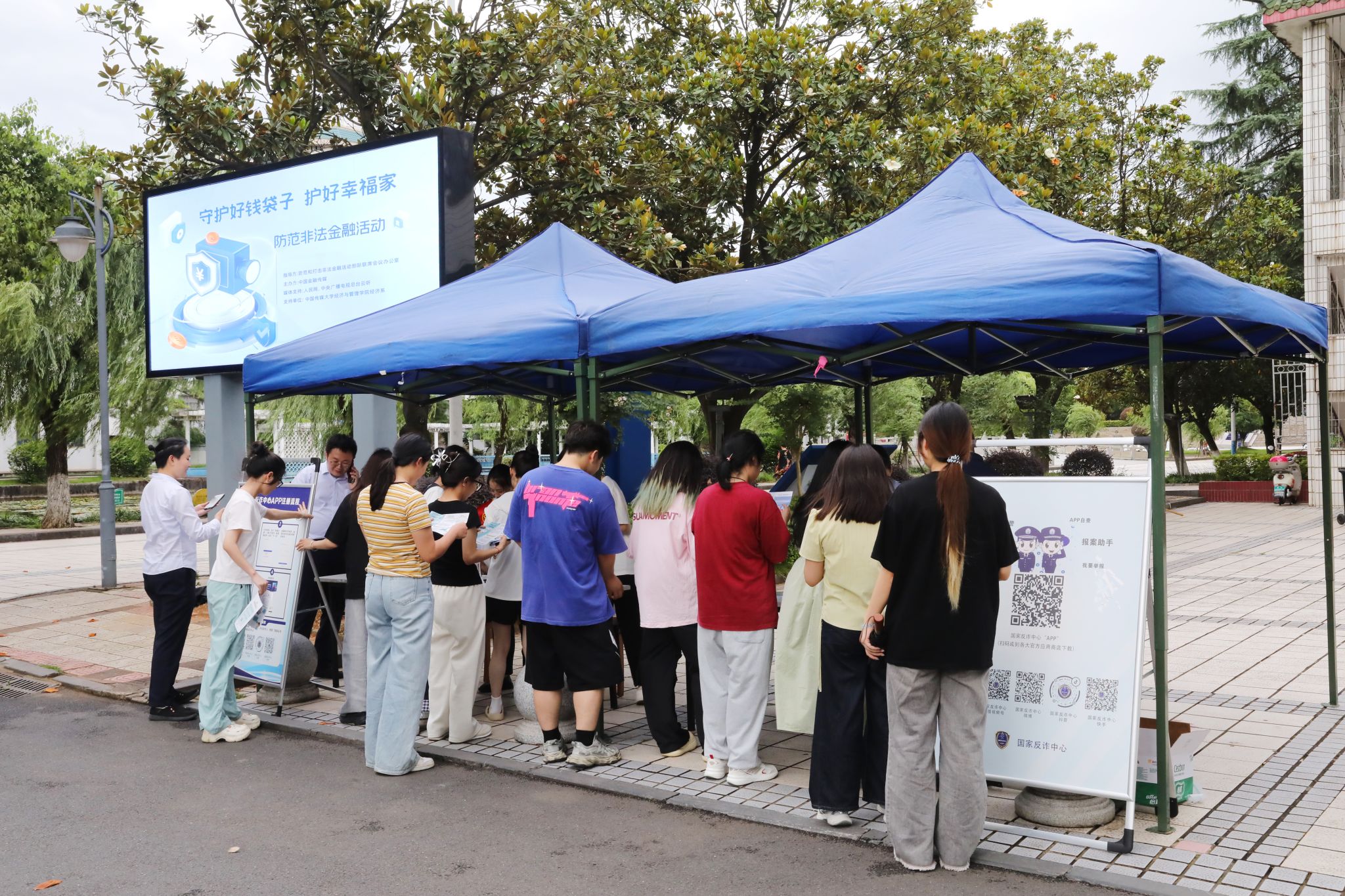 本网讯(记者 向薛峰 摄影 谢志豪)为切实提升广大师生对非法金融活动的风险识别能力与安全防范意识。近日,学校组织开展“守住钱袋子,护好幸福家”防范非法金融宣传月活动,以沉浸式宣传教育场景打造了一堂兼具实用性与警示性的金融安全实践课。