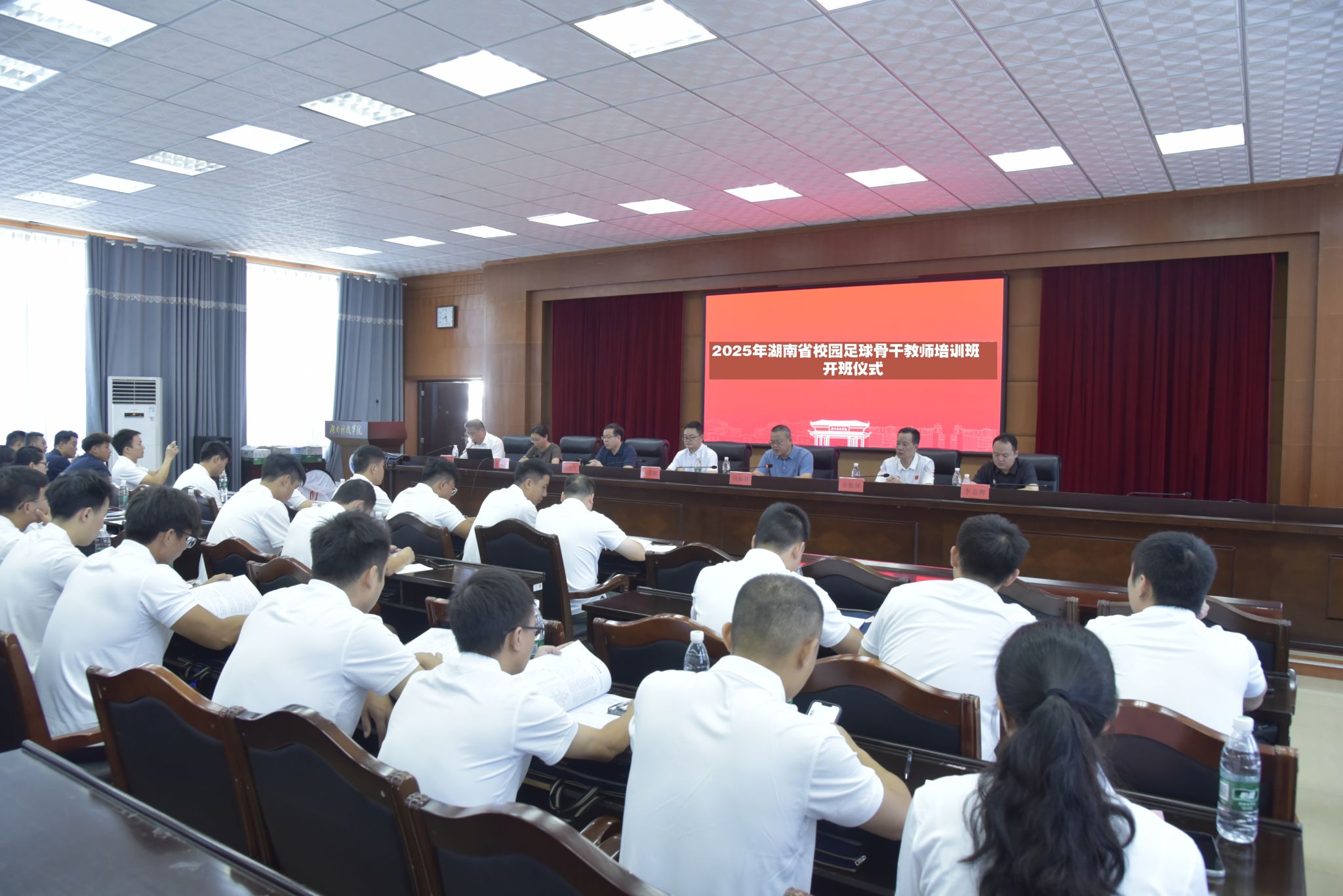 本网讯(通讯员 庄鸣)7月3日上午,由湖南省教育厅体育卫生与艺术教育处主办的2025年湖南省校园足球骨干教师培训班在永利官网开班。湖南省教育厅体育卫生与艺术教育处副处长鲁荷阳,校党委委员、副校长何福林,湖南省青少年校园足球工作领导小组办公室竞赛主管谷贻林,永州市教育局党组成员、副局长欧阳军出席仪式,来自永州市各县市区的45名中小学体育教师参加培训。