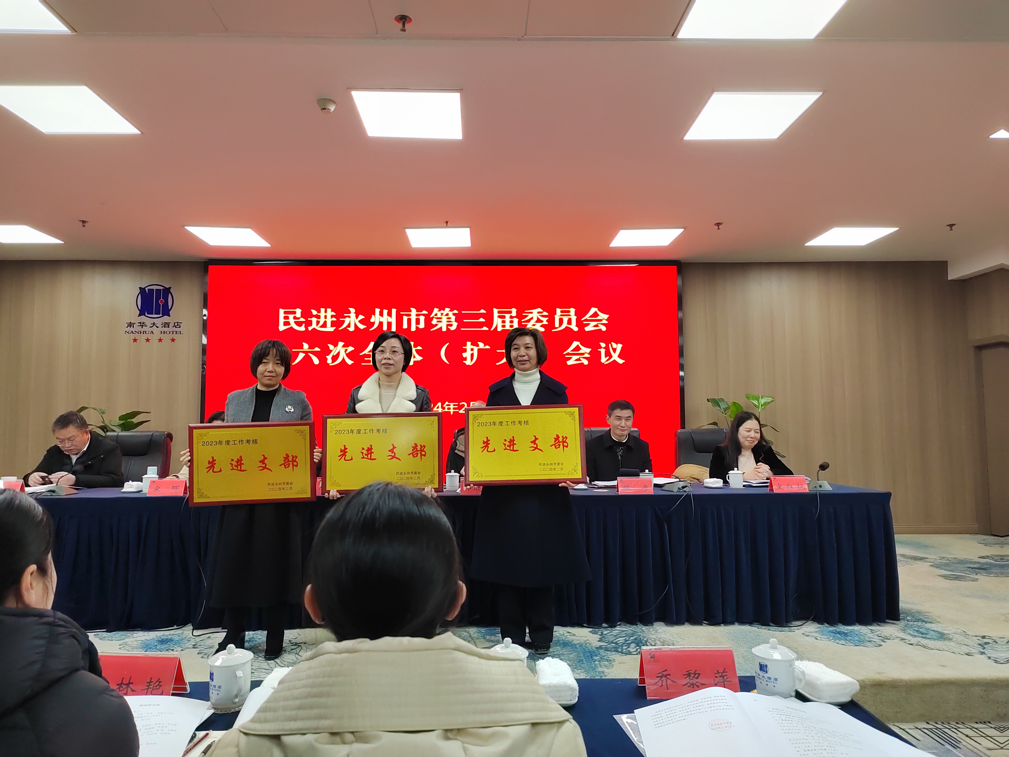 本网讯(通讯员 李焕品)2月29日上午,民进永州市委会三届六次全体(扩大)会议在冷水滩举行。民进304am永利集团官网支部在2023年度市委会支部考核中位居第一,被评为先进支部。何丽萍被评为社情民意信息工作先进个人,李焕品被评为优秀会务工作者,王豪才、包红光、李小雨、蒋玮玮被评为优秀会员,包红光作为优秀代表发言。