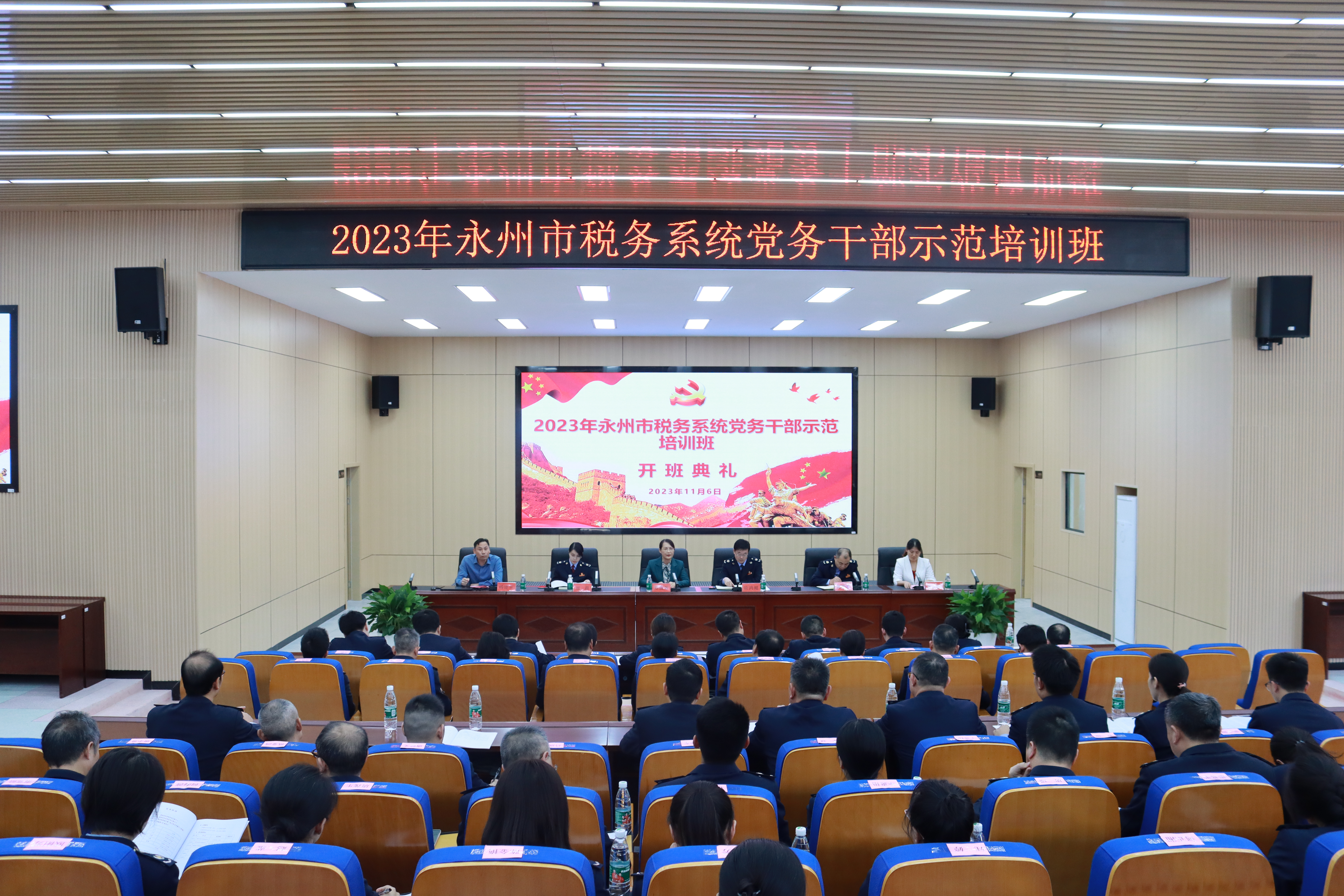 本网讯(通讯员 邹小阳)11月6日,2023年永州市税务系统党务干部示范培训班在永利官网开班。副校长郑银芳出席开班仪式并致欢迎辞,永州市税务局党委委员、副局长、机关党委书记欧鸿鲲作开班动员讲话,开班仪式由继续教育学院副院长杨建军主持。