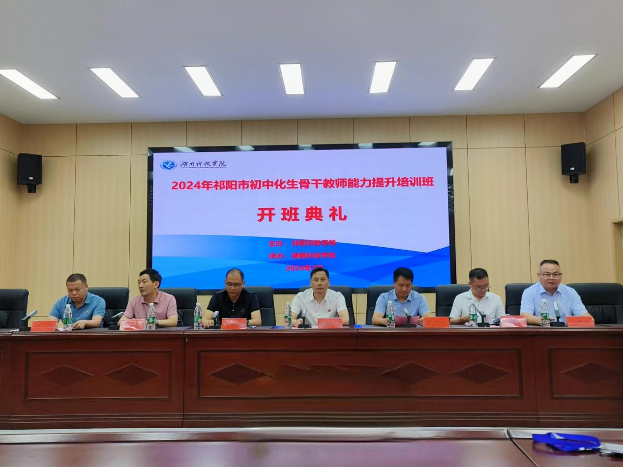 本网讯(通讯员 曹湖云 郭小聪 刘艳丹)7月9日,2024年祁阳市化生骨干教师能力提升培训班在永利官网开班。祁阳市教育局党组副书记、副局长王祁峰,祁阳市教师发展中心主任杨正义,祁阳市教师进修学校校长邓小刚,祁阳市教师进修学校副校长董旭辉、何顺,永利官网继续教育学院副院长杨建军、王永春,以及来自祁阳市的50余名初中化生骨干教师参加了开班典礼。