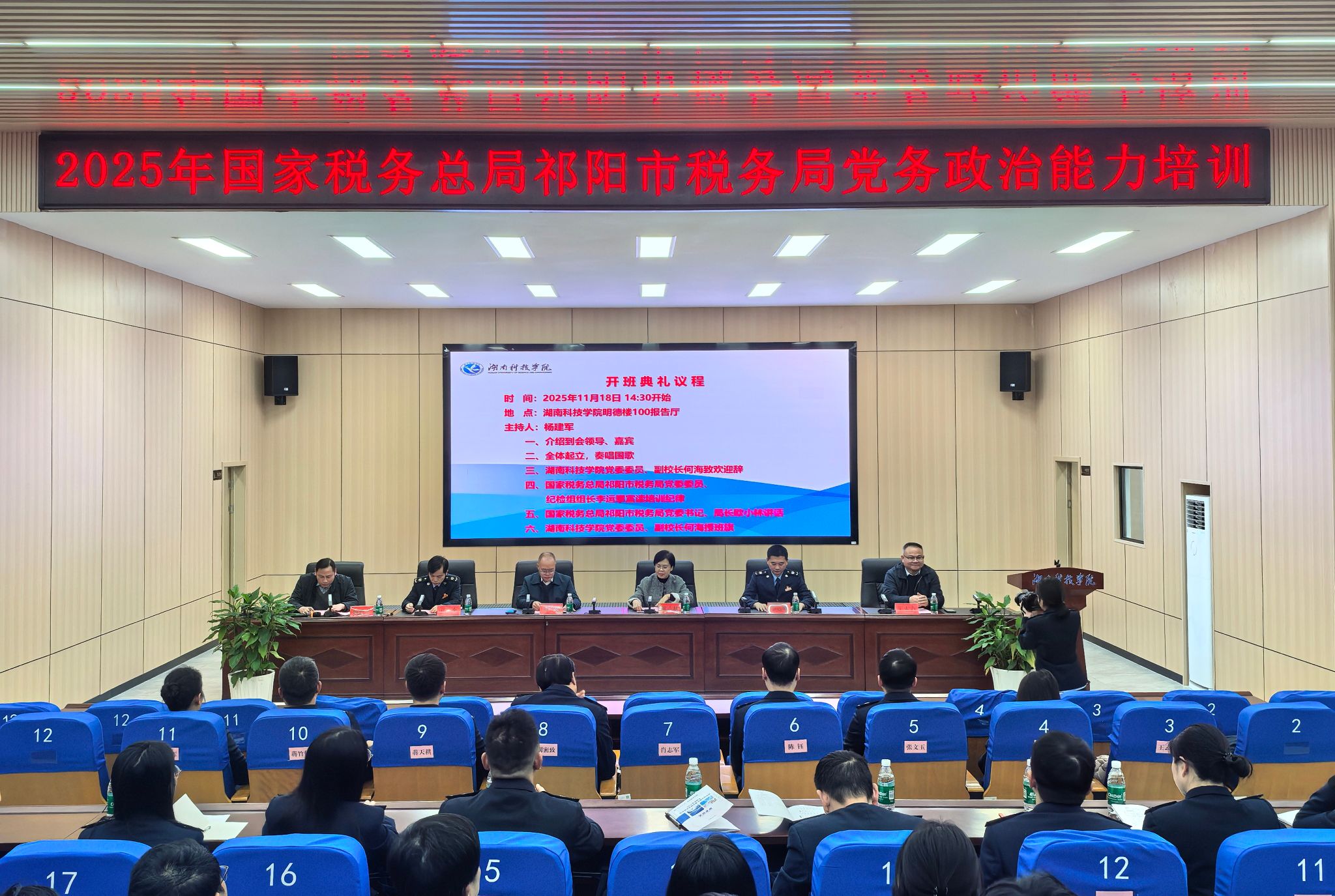 本网讯(通讯员 邹小阳)11月18日,2025年国家税务总局祁阳市税务局党务政治能力培训班在永利官网开班。校党委委员、副校长何海,祁阳市税务局党委书记、局长欧小林等领导出席开班仪式。来自该市税务系统的52名干部齐聚一堂,开启集中学习之旅。
