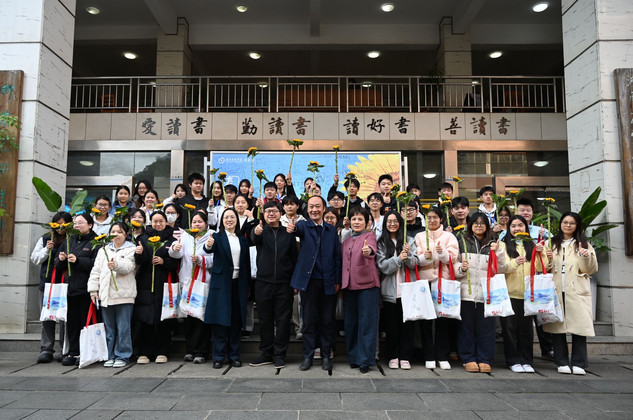 活动现场,学校领导与图书馆工作人员为考研学子发放了专属“暖心加油包”:定制的帆布袋寓意一路相伴,巧克力祝福“巧”克难关,鲜橙象征马到“橙”功,“文曲星”钥匙扣期许下笔有神。同学们纷纷表示,这些礼物既是物质支持,更是精神鼓舞。