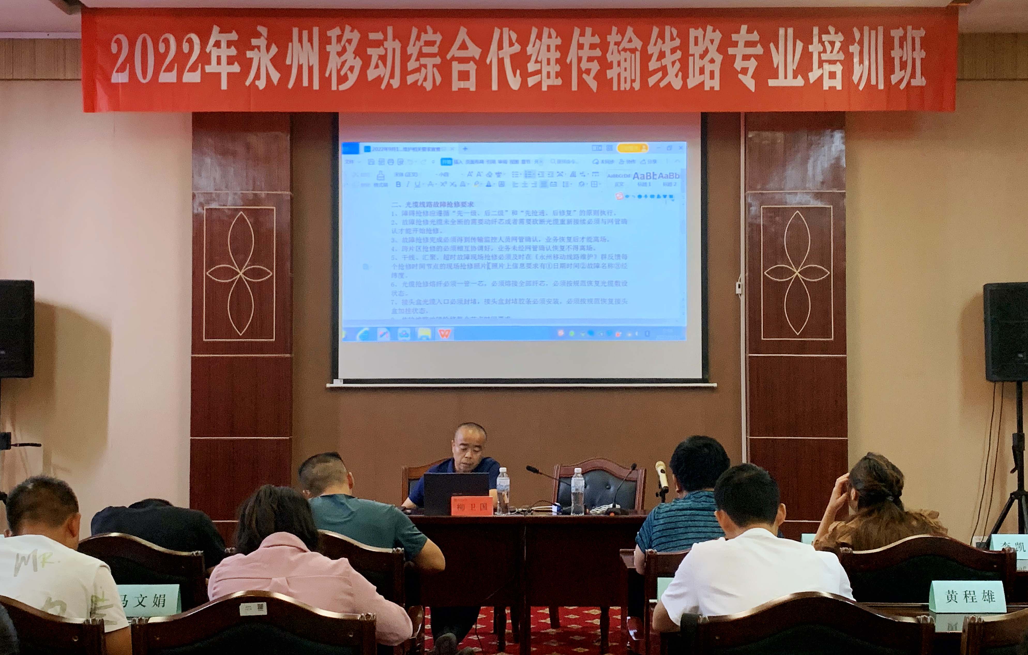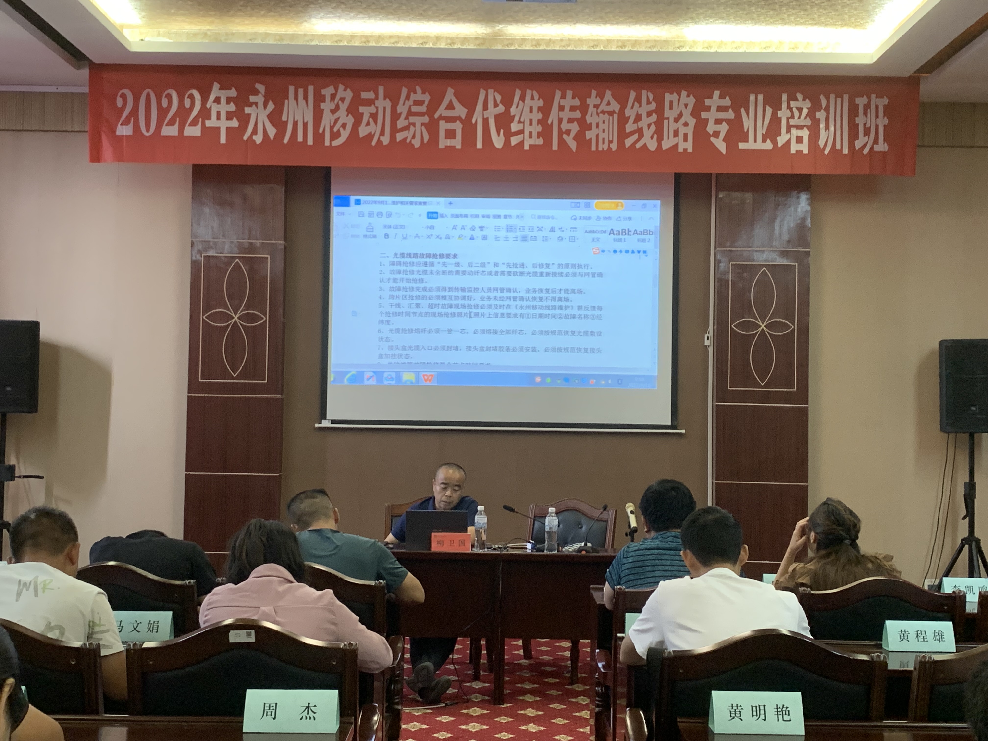 本网讯 9月15日下午,2022年永州移动综合代维传输线路专业培训班在永利官网举行,来自永州市移动公司县公司管理员及代维管理员30余名学员参加此次培训。培训为期两天,由永州移动总公司主办,继续教育学院承办,是永利官网首次为中国通信产业龙头企业举办培训班。