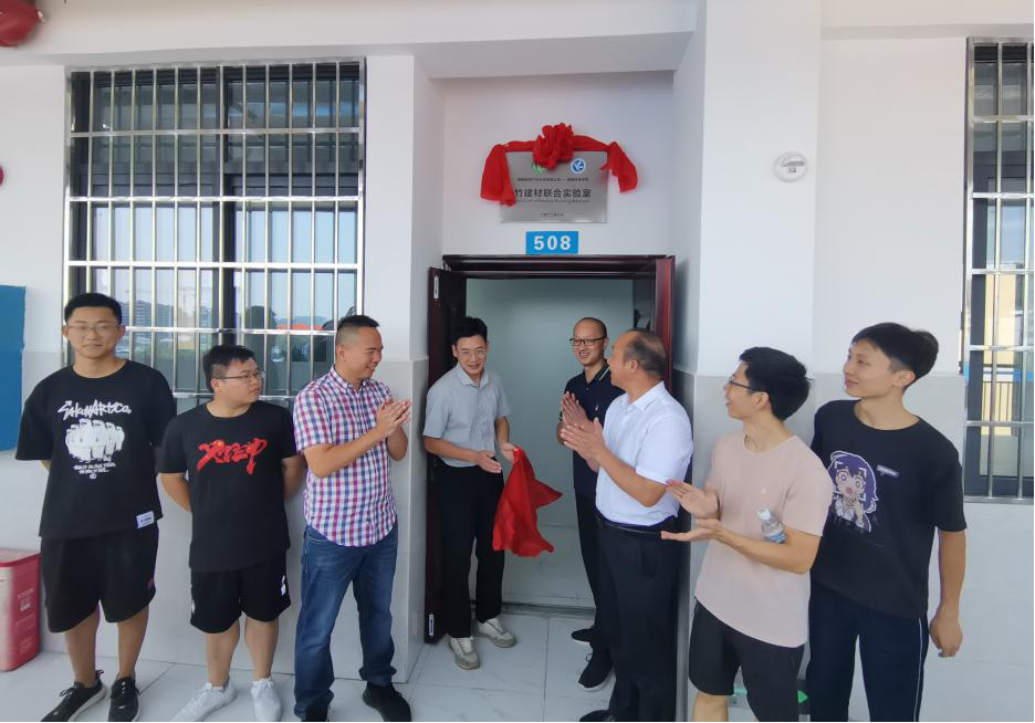 本网讯 8月1日,“竹建材联合实验室挂牌仪式”在学校工科实验大楼举行,土木与环境工程学院院长周基、湖南阳明竹咏科技有限公司法定代表人陶祖起共同为实验室揭牌。