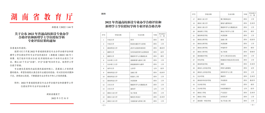 本网讯 近日,湖南省教育厅公布2022年普通高校新设专业办学合格评估和新增学士学位授权学科专业评估结果,学校摄影专业顺利通过评估,取得学士学位授予资格。