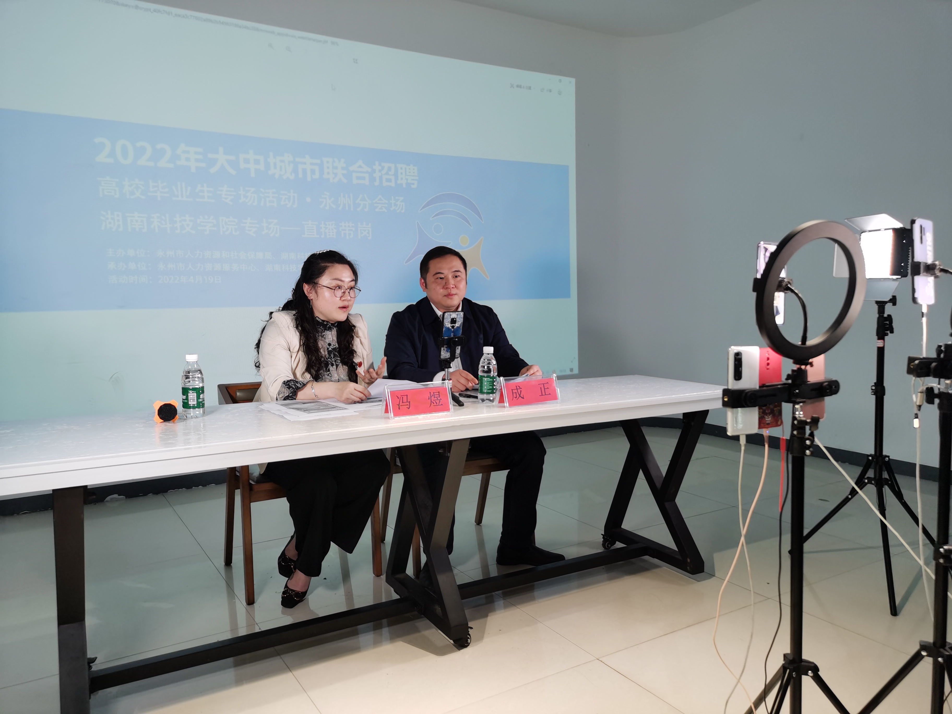本网讯“创业贷款怎么申请?”“就业见习到哪报名?”“有入职培训吗?”……4月19日下午,永州市2022年大中城市联合招聘高校毕业生304am永利集团官网直播带岗专场在创新创业学院举行,活动在304am永利集团官网视频号、永州智慧就业视频号和抖音号等平台同步直播。副校长郑银芳、永州市人社局副局长蒋新山莅临现场指导。