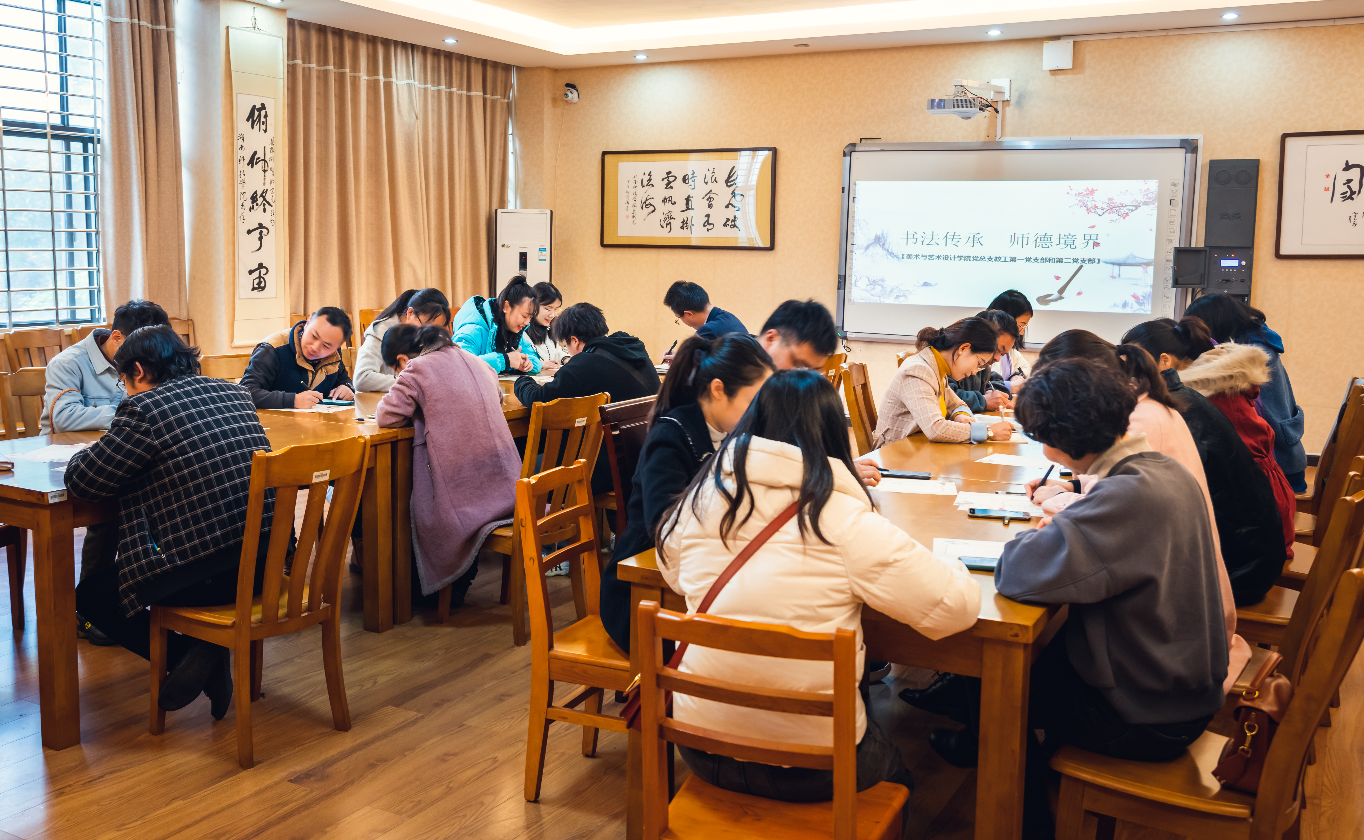 本网讯 11月16日下午,美术与艺术设计学院党总支组织教师党员开展“学习六中全会精神 树立优良师德师风”主题党日活动。全体党员通过学习研讨、硬笔书法大赛等方式,学习十九届六中全会精神,切实加强师德师风教育。