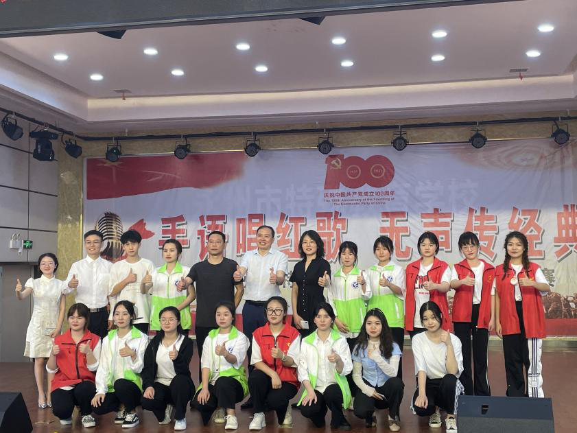 志愿者与永州市特殊学校的老师一起筹划活动,编排节目,全程参与,志愿者的倾力相助得到师生点赞。大学生志愿者们与大家一起用手语的形式表演了《歌唱祖国》《红星颂》等歌曲,用特殊的方式唱响对中国共产党百年华诞的美好祝愿。最后,志愿者们还为小朋友们送上糖果盒文具等爱心礼物。
