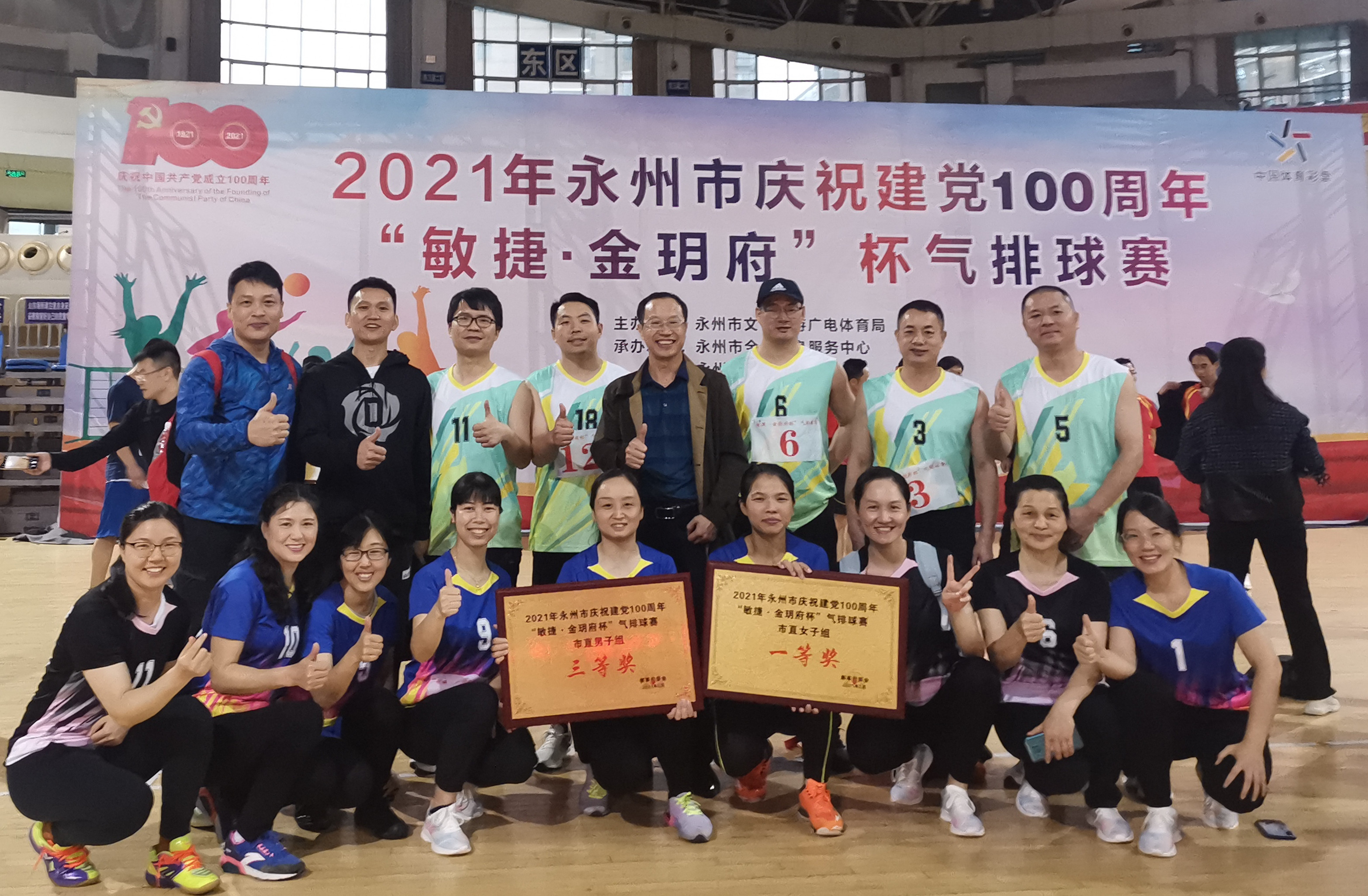 本网讯 5月19日下午,2021年永州市庆祝建党100周年气排球赛在市体育中心落下帷幕,永利官网女子气排球队荣获市直单位组冠军,男子气排球队获得三等奖。