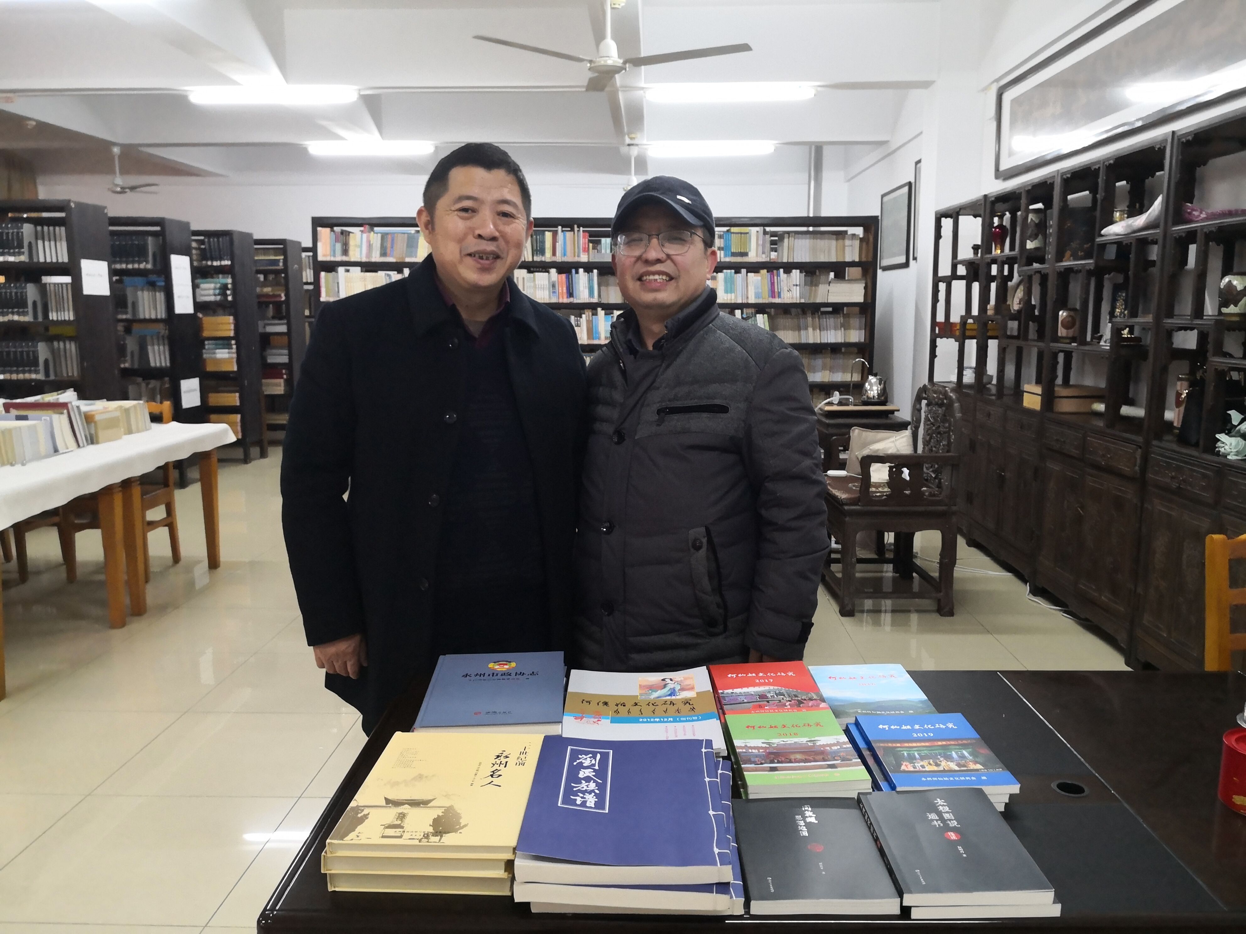 刘翼平代表永州市作协向图书馆捐赠了《周敦颐思想地图》、《何仙姑文化研究》(期刊1-8期)、《最初那一滴水》等14套共38册书籍资料,并就现当代文学馆建设等问题与图书馆馆长周甲辰等同志进行了交流研讨。