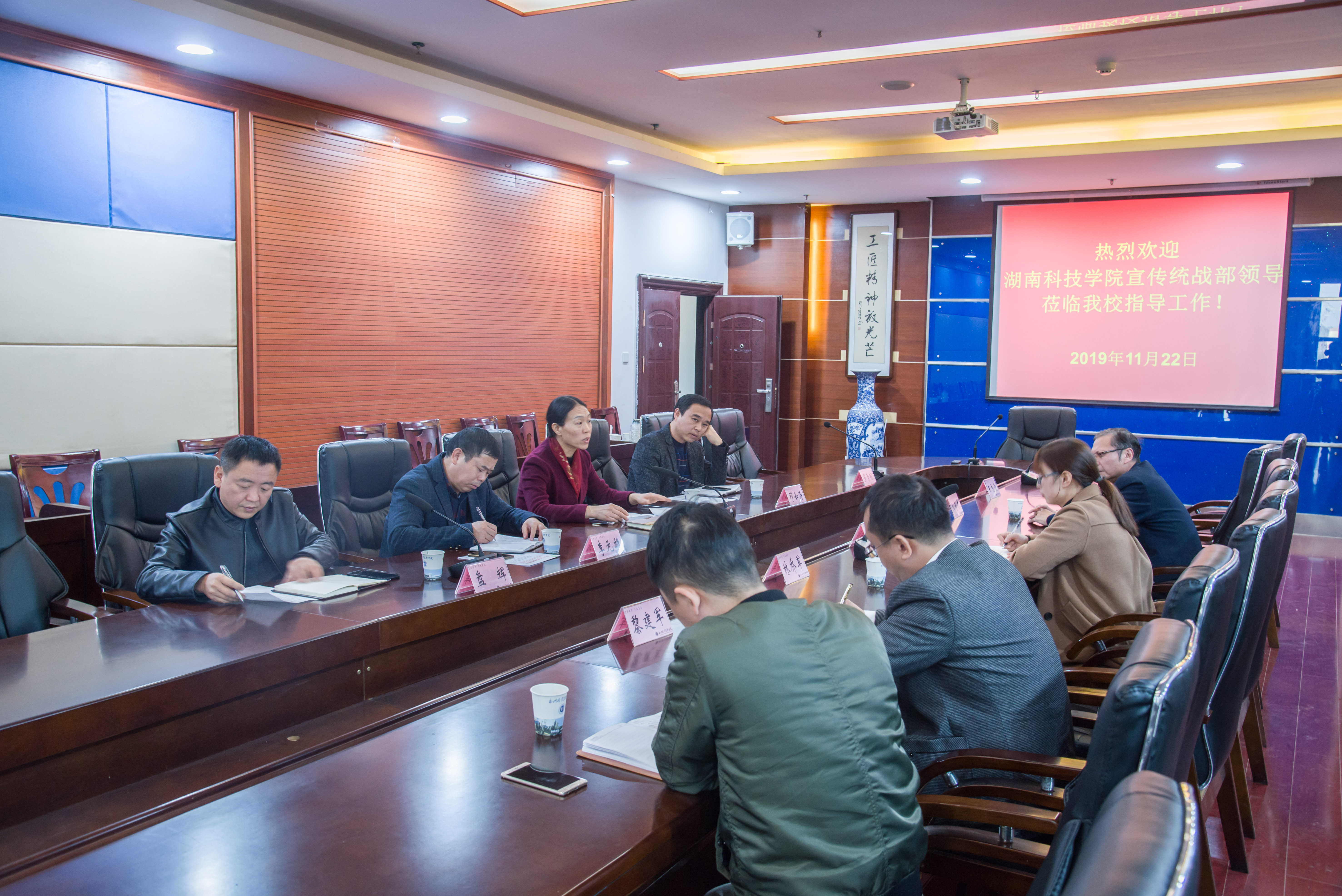本网讯 11月22日,党委宣传统战部副部长陈玉皎一行5人赴永州职业技术学院交流学习,永州职业技术学院党委委员、宣传统战部部长裴有为及学工部长邓如涛参加交流座谈会。