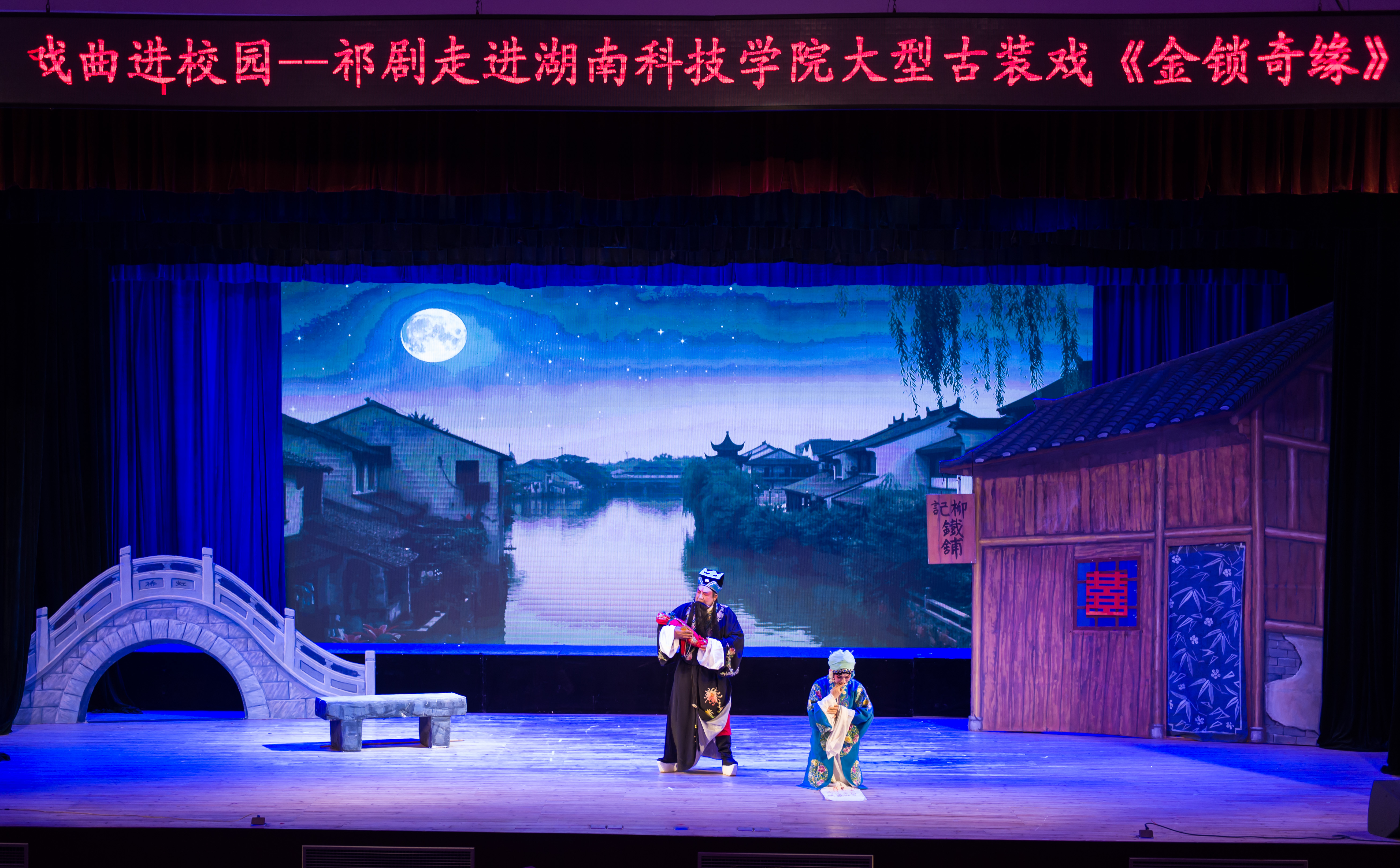 28日晚,祁阳县祁剧团历时两年改编创新的代表性剧目《金锁奇缘》在永利官网音乐厅演出。《金锁奇缘》讲述的是明朝忠良刘之章遭奸臣陷害,留下血书、金锁,弃子在“柳记铁铺”门口,铁匠之女柳明月把婴儿抱进家中。柳父却贪财密告官府。情急中,柳明月称婴儿是自己的私生子,从此丑名远扬。18年后,柳明月孤身抚养的孩子高中状元,真相大白。故事情节扣人心弦,演员精湛的表演引人入胜,赢得了现场观众热烈的掌声。
