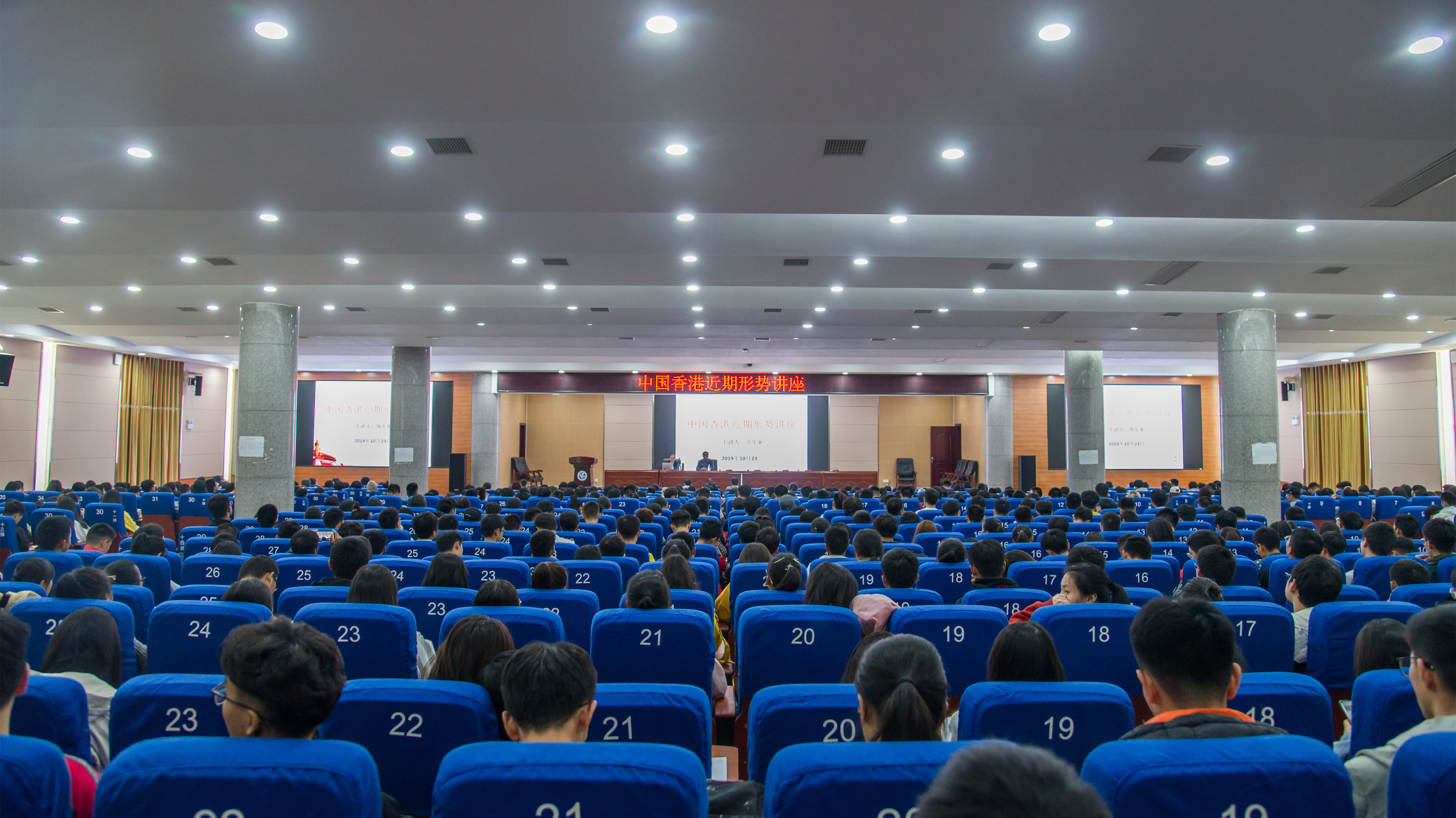 本网讯 10月23日晚,港澳台事务办举行香港问题形势与政策专题讲座,永州市委副秘书长、市委台办主任、市委外事办主任周生来受邀来校主讲近期香港形势。各教学学院学生工作负责人、学生代表800余人参加。