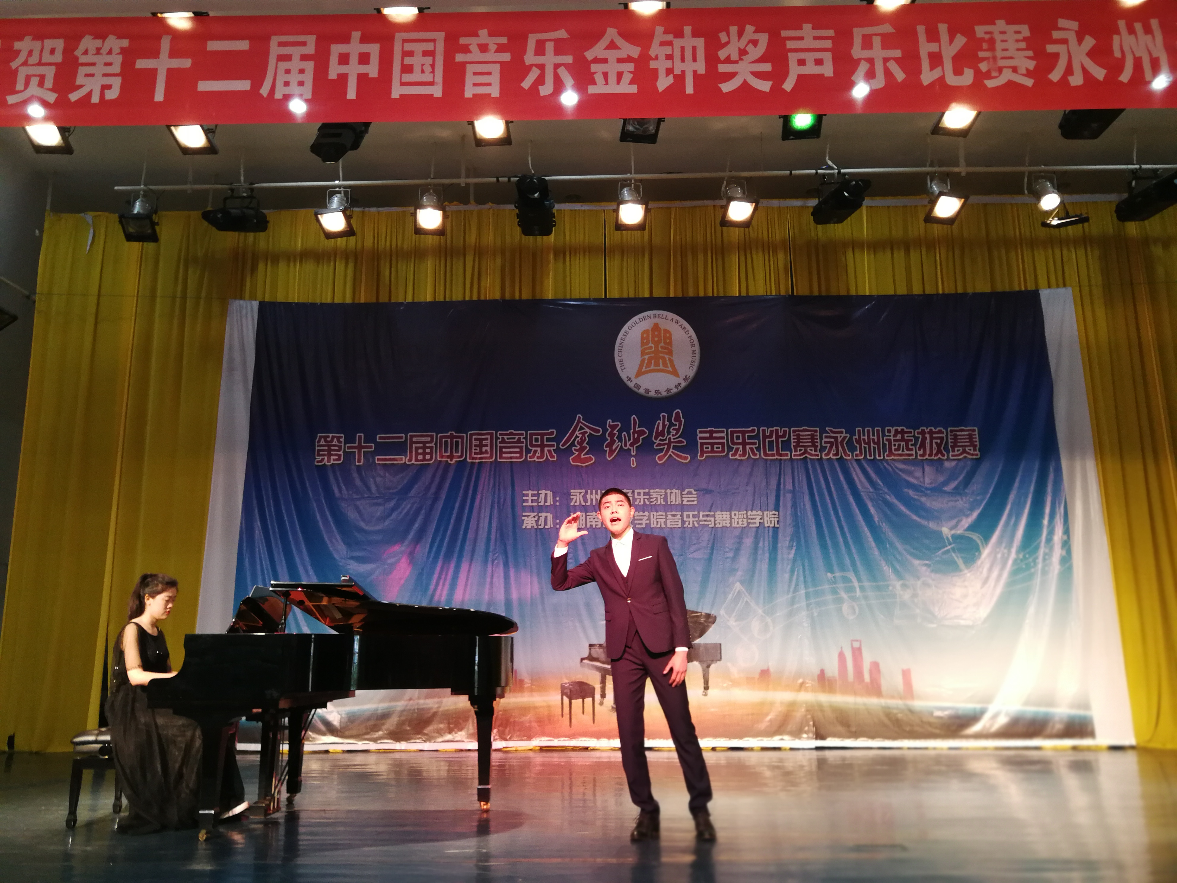本网讯 4月27日,由永州音乐家协会主办、音乐与舞蹈学院承办的第十二届中国音乐金钟奖永州选拔赛在学校举行。