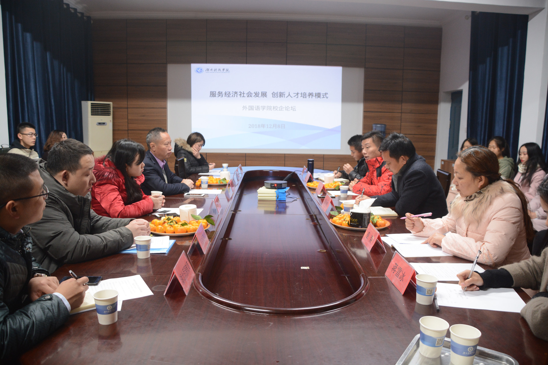 本网讯 为深化教育教学改革,加强校企合作交流,积极探索校企合作人才培养新模式,12月8日下午,外国语学院在博雅楼举行以“服务经济社会发展,创新人才培养模式”为主题的校企合作论坛。湖南一鸣教育集团、东莞泛美光电有限公司、东莞市开益精密模具有限公司等公司的代表,外国语学院党总支书记雷树彬、党总支副书记王瑛参加论坛。
