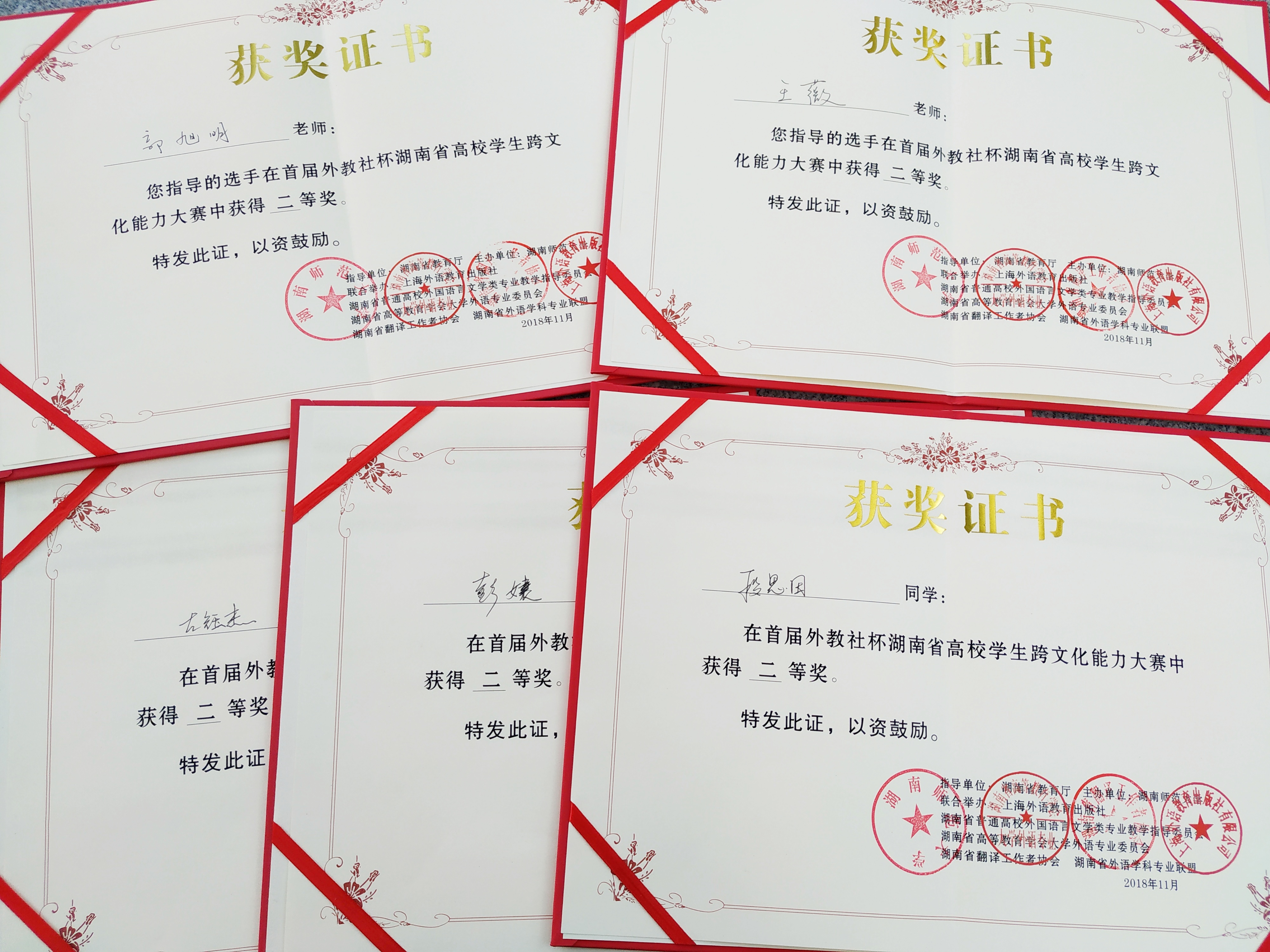 本网讯 11月25日,第一届“外教社杯”湖南省高校学生跨文化能力大赛在湖南师范大学落下帷幕,永利官网英语1603班彭婕、汉文1603班段思田和国贸1602班左钰杰组成的团队从激烈的竞争中脱颖而出,荣获二等奖。