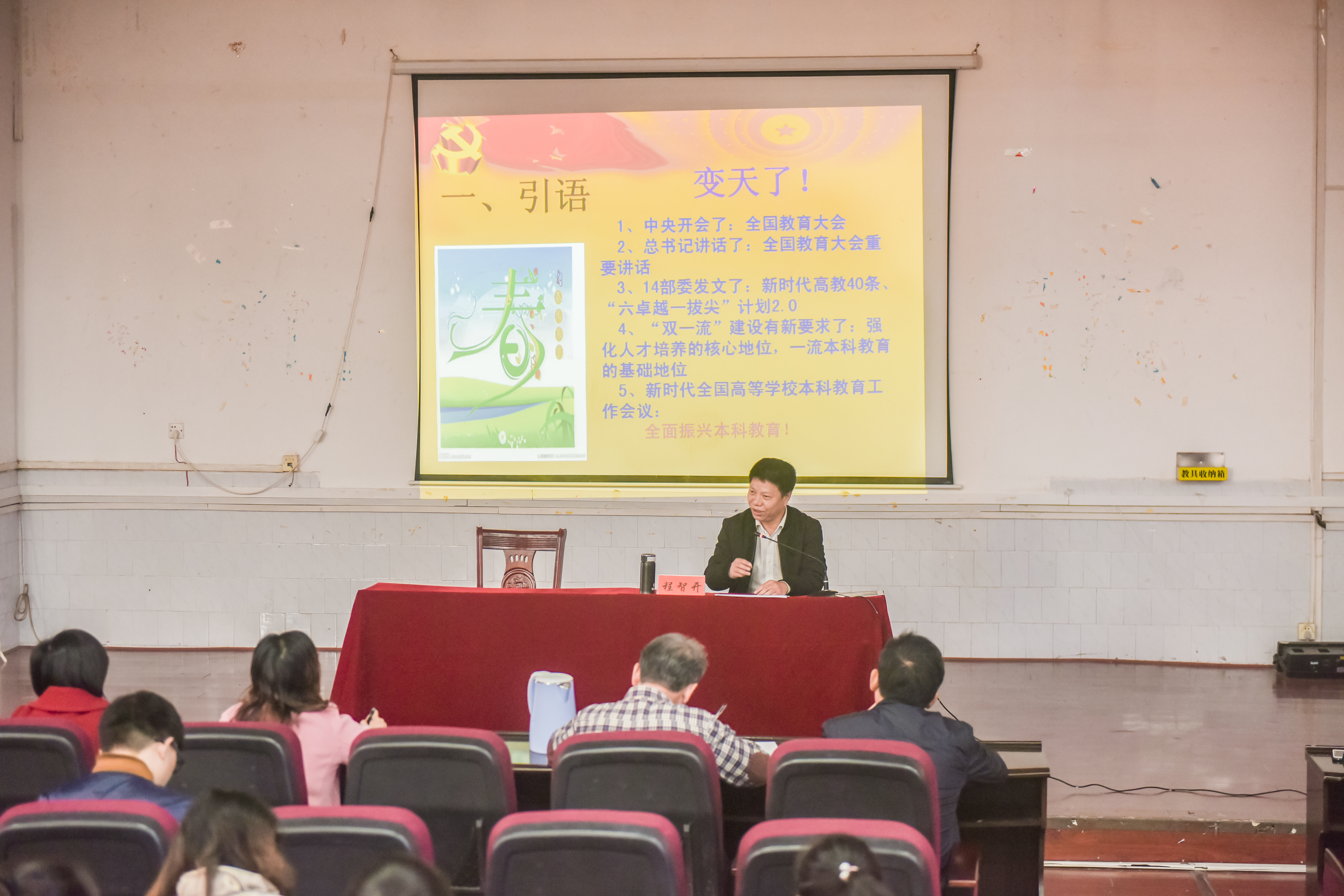 本网讯 11月27日,副校长程智开在博雅楼为外国语学院全体党员、教职工作题为《回归本分 努力开创永利官网教育新境界》的辅导报告,传达习近平总书记关于教育的重要论述和全国教育大会精神。