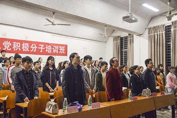 本网讯 10月22日,外国语学院、传媒学院、音乐与舞蹈学院、旅游与文化产业学院和国学院联合举办的2018年下学期入党积极分子培训班举行开班典礼。传媒学院党总支书记蒋诗堂,其他相关学院老师和84名学员参加。