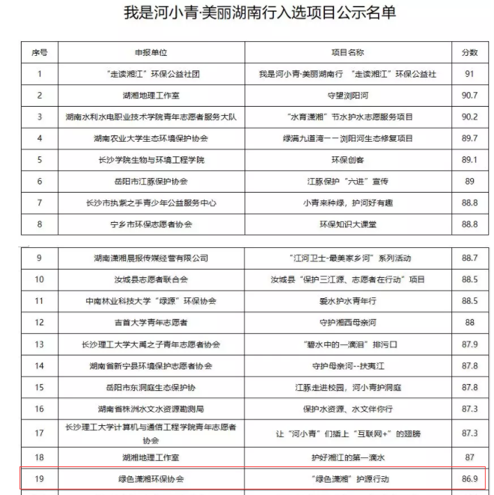 本网讯 6月30日,由共青团湖南省委、省水利局主办的“我是河小青·美丽湖南行”项目评审会在长沙举行,永利官网绿色潇湘环保协会的“绿色潇湘护源行动”项目从全省312个方案中脱颖而出,成功入选。