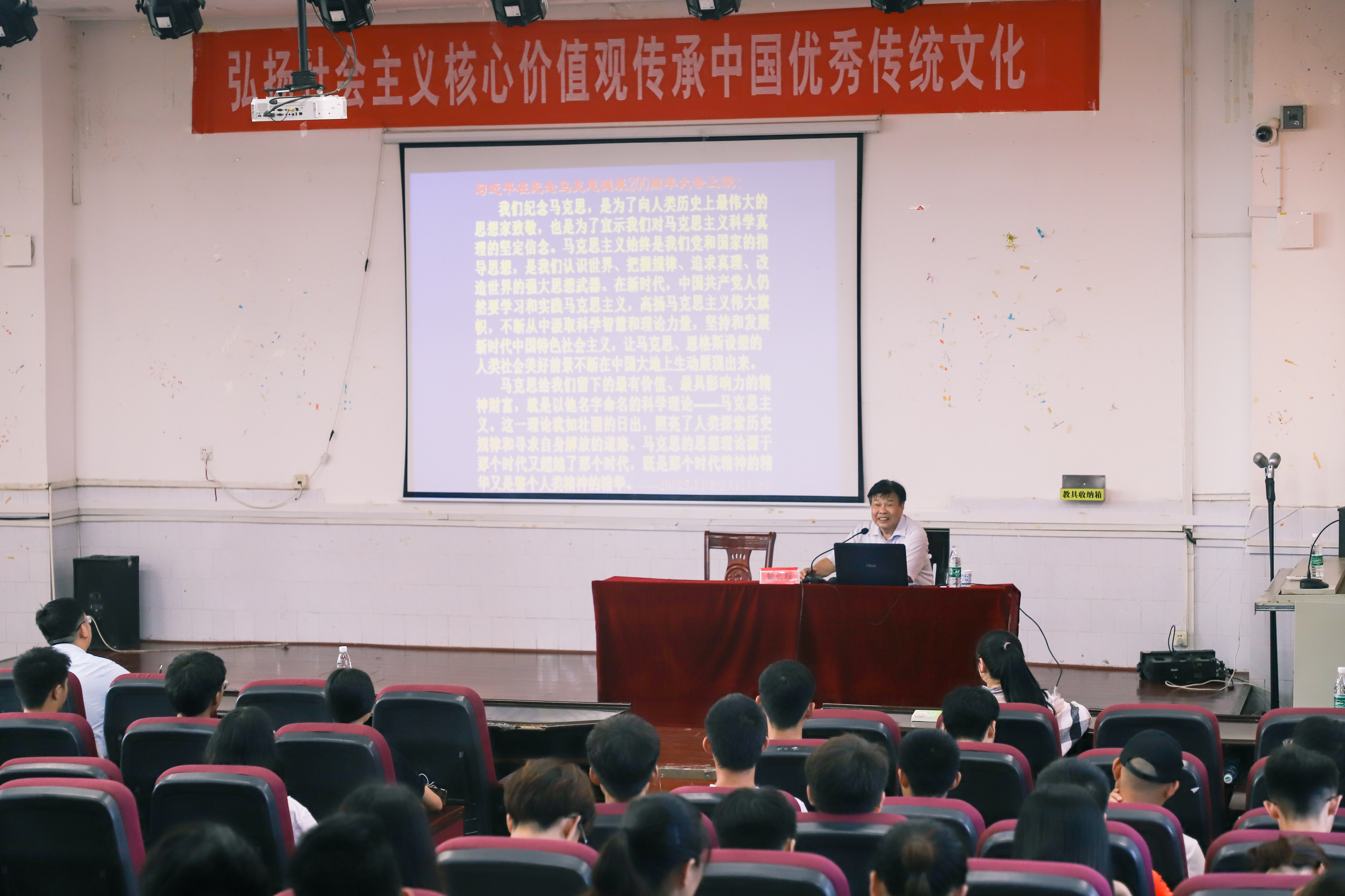 本网讯 6月26日下午,为深入学习习近平总书记在纪念马克思诞辰200周年大会上的重要讲话精神,进一步加强永利官网团学干部、团员青年理想信念教育,引领青年学生用马克思主义理论武装头脑,校团委特举办“纪念马克思诞辰200周年”青年学生专题报告会。邀请中南大学马克思主义理论一级学科博士后流动站负责人曾长秋教授来校为大家做辅导报告。