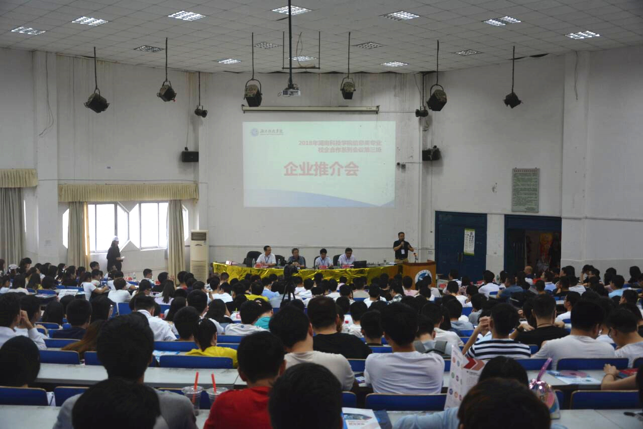 本网讯   6月9日,2018年信息类专业校企合作推介会在日新楼212举行,15家企业代表来校宣讲。校长曾宝成、副校长李常建、教务处处长石循忠以及电子与信息工程学院全体院领导出席。