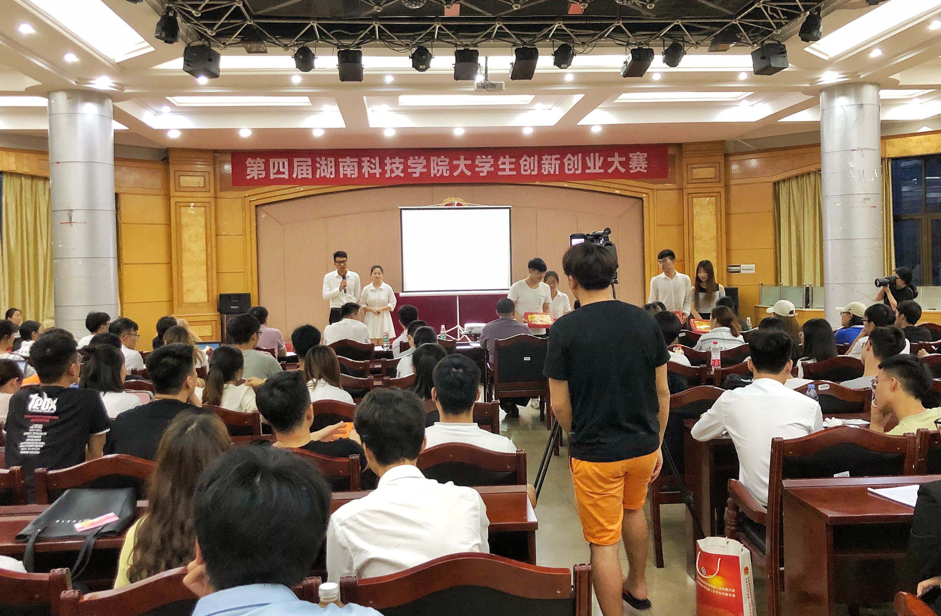 本网讯 为营造良好创新创业氛围,同时也为第四届湖南省“互联网+”大学生创新创业大赛、第五届湖南省创新创业大赛、KAB全国推广办公室大学生微创业大赛等选拔优秀参赛项目,6月15日晚,学校在明德楼二楼报告厅举行第四届大学生创新创业大赛决赛。大赛邀请了教育部互联网+大学生创新创业大赛专家评委邹秀峰(凹凸人投资董事长)、成忠(全国优秀创新创业导师)等7位校内外评审专家担任评委。