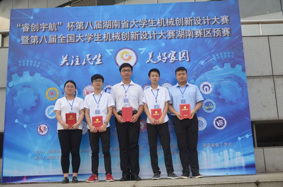 本网讯 5月11日至5月13日,第八届湖南省大学机械创新设计大赛在湖南工程学院举行,来自全省32个院校的248支队伍参赛,永利官网电子与信息工程学院罗哲、杨文佳老师指导的马雪峰、伍博林、李鑫洋、汤伟明、崔锦雯同学荣获二等奖,实现了永利官网在该类比赛项目获奖的零突破。