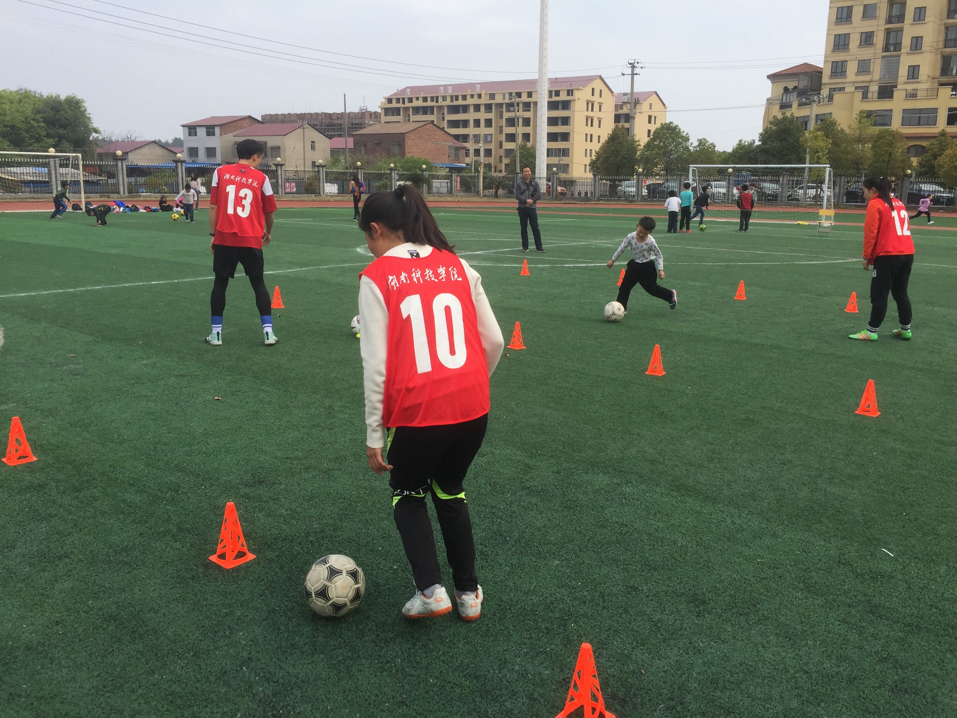 由永利官网体育学院足球专业班学生组成的教练队伍受到了职院附小师生及家长们的热烈欢迎。小教练们一到场地便马上投入到与小朋友的游戏互动中。他们讲授足球基本知识,带领小朋友们做足球游戏,做绕杆、射门练习等,气氛欢快热闹,许多家长纷纷也加入其中,和孩子们一起游戏,给他们加油鼓劲。家长们纷纷赞扬:“你们的支教活动不仅培养了孩子们的足球兴趣,更给他们带来了健康和快乐,非常感谢你们。”