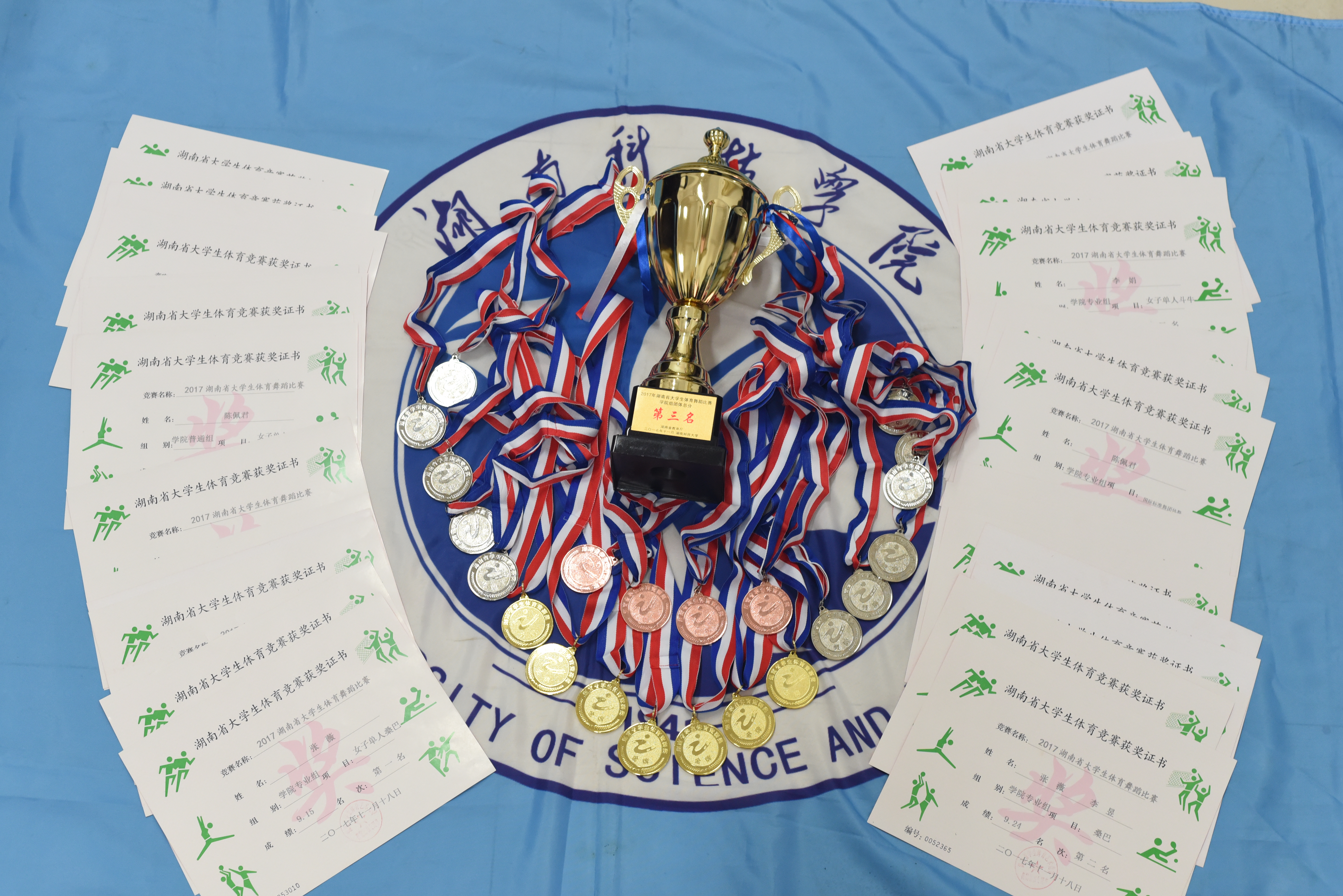 本网讯 11月15日至18日,2017年湖南省大学生体育舞蹈锦标赛在湖南科技大学举行。本次比赛由湖南省教育厅主办,湖南科技大学承办,共有来自中南大学、湖南大学、湖南师范大学等25所高校的420名运动员参赛,永利官网体育学院党总支书记何智强带领13名运动员参赛,最终荣获5金5银2铜的优异成绩。
