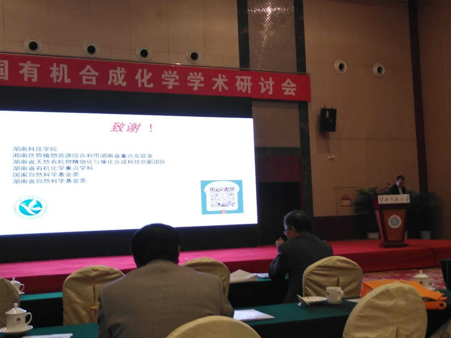 何卫民在报告中介绍了该课题组的主要工作,然后从水相炔烃绿色官能化反应、水相氮杂环化合物官能化反应等方面进行了工作阐述。报告结束后,何卫民与参会专家学者进行了深入交流与讨论,分享了最新研究成果,探讨绿色有机合成及其产业化研究新思路,为之后学校间的学术交流奠定了基础。此外,由永利官网教师左文设计、彭莎和王峥制作的学术墙报,不仅展示永利官网在绿色化学研究领域的成果,还将永州的风景名胜呈现给与会嘉宾,受到了与会专家的一致好评。