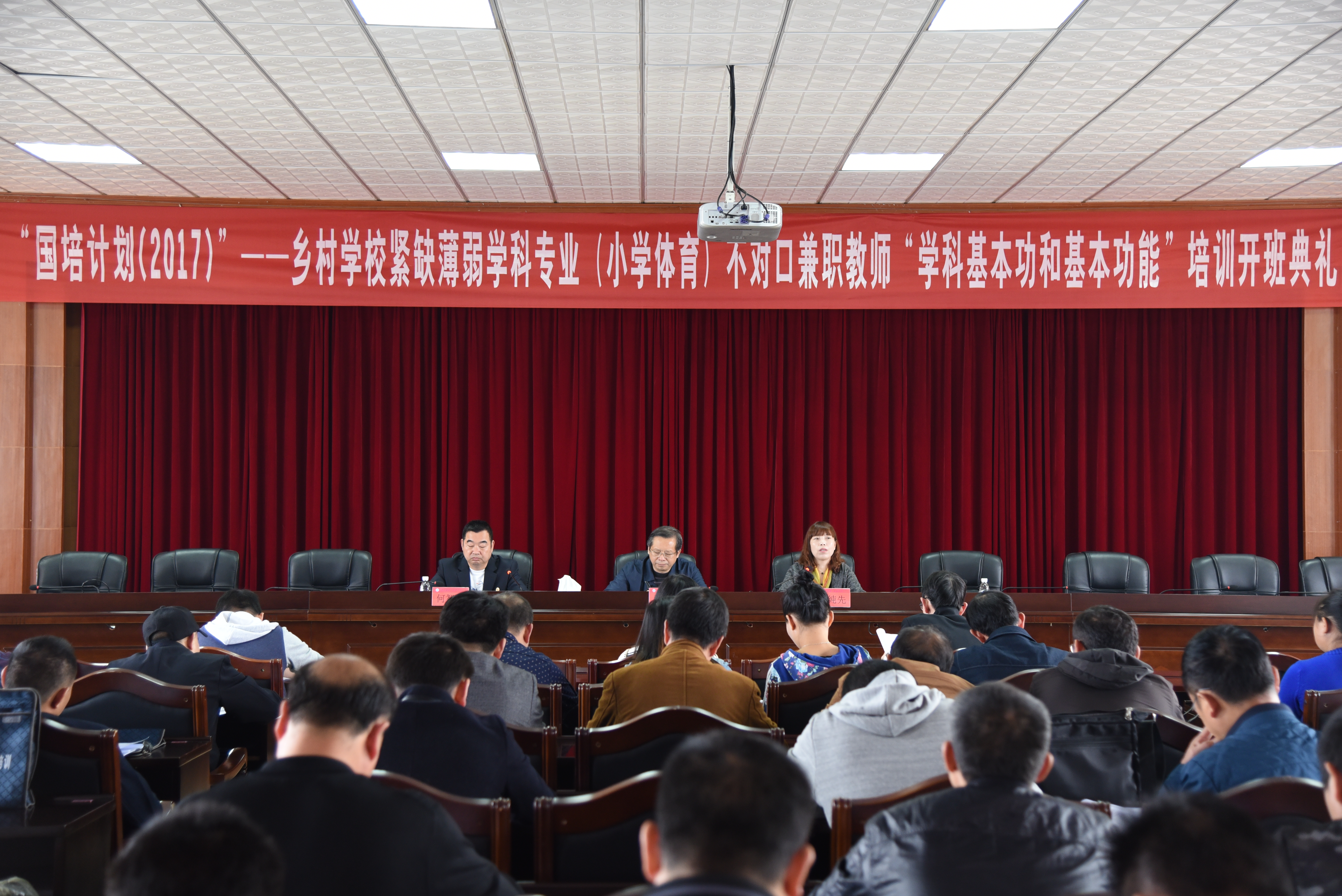 本网讯 11月10日,“国培计划(2017)”——乡村学校紧缺薄弱学科专业(小学体育)不对口兼职教师“学科基本功和基本功能”培训开班典礼在行政楼八楼一会议室举行,副校长郑山明、继续教育学院院长徐纯先出席本次开班典礼,体育学院党总支书记何智强主持开班典礼。