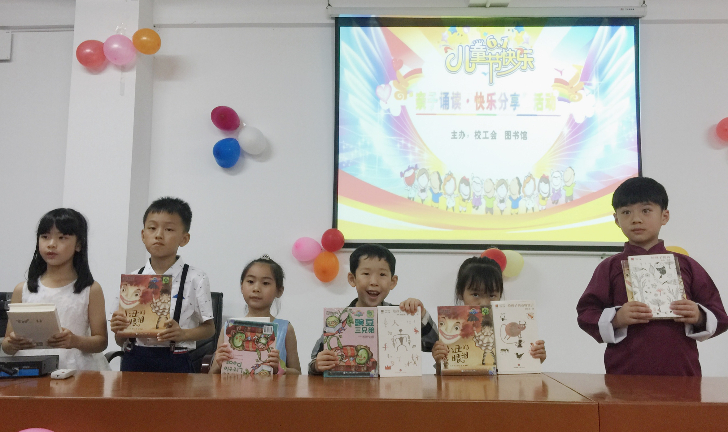 本网讯 6月3日上午,为庆祝“六一”儿童节,丰富教职工子弟的课余文化生活,从小培养孩子们良好的阅读习惯,学校工会与图书馆联合举办了“亲子诵读,快乐分享”活动,近百名孩子及家长尽享读书带来的愉悦。
