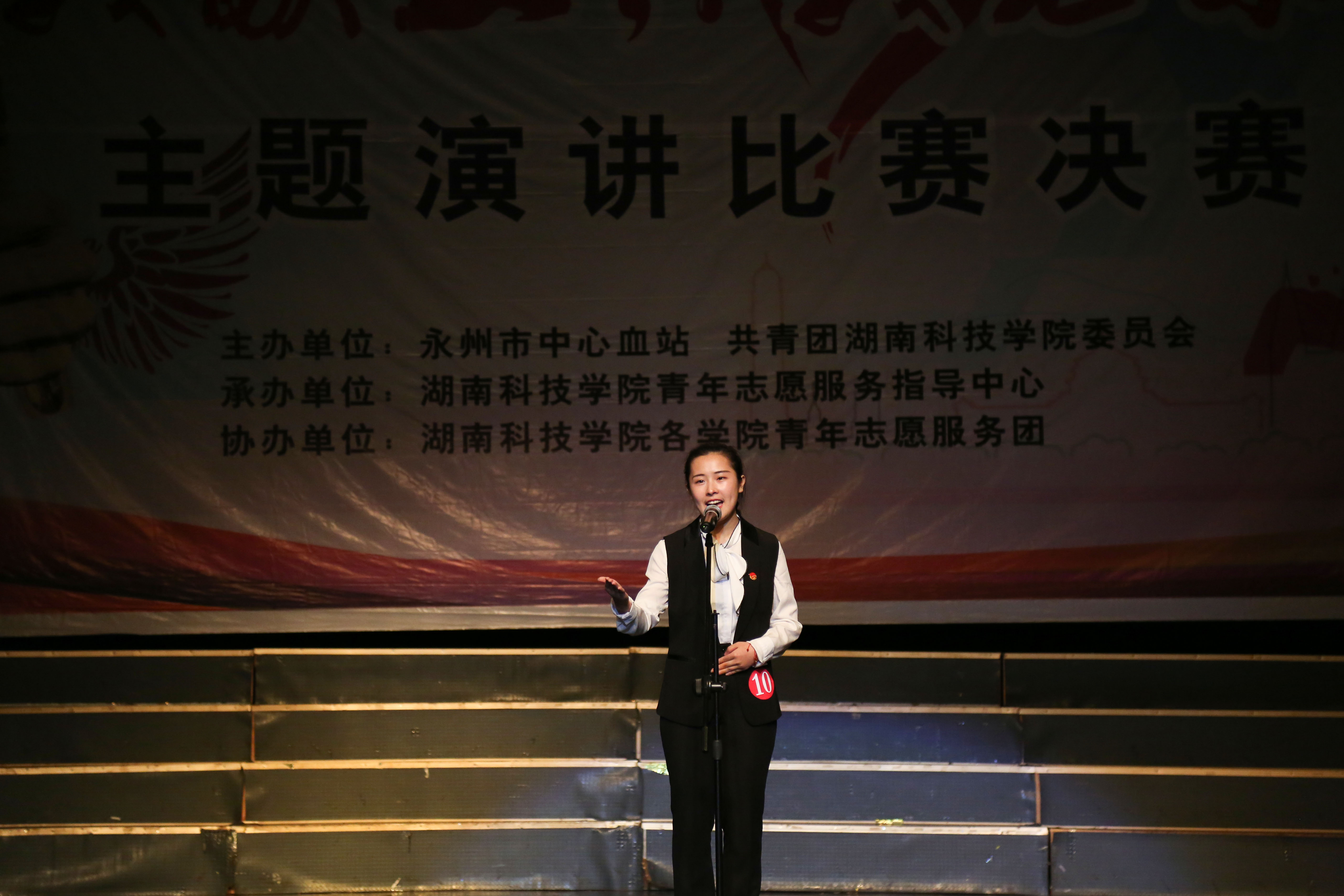 本网讯 4月7日晚,由共青团304am永利集团官网委员会、永州市中心血站联合主办,学校青年志愿服务指导中心承办的“我献血,我光荣”主题演讲比赛在音乐厅举行。永州市中心血站党支部书记、站长郑淑山,校团委副书记刘佳等应邀出席并担任评委。