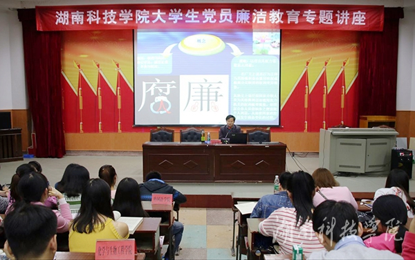 李钟麟教授从现代化教育、国民经济命脉、政府政治制度等方面切入,并由此引出“清正廉洁盛行之日,则国家昌盛;贪污腐败猖獗之时,则国势衰微”。他全面阐述了中国共产党面临的四大考验和四大危险,讲述了中国古代重民生知根本、畏法度而能自律等廉政思想,从入仕前后的廉政教化来评述中国古代的廉政教育实践,他用慎始、慎微、慎独、慎好、慎权、慎行、慎终为主题的七个幽默风趣的小故事分析了当前大学生廉洁教育的重要性和紧迫性。他提出,大学生党员要将廉洁思想融入到学习实践科学发展观活动中,切实履行一名党员的基本职责,不断增强党员的创造力、凝聚力和战斗力,努力成长为社会主义建设可靠的接班人。